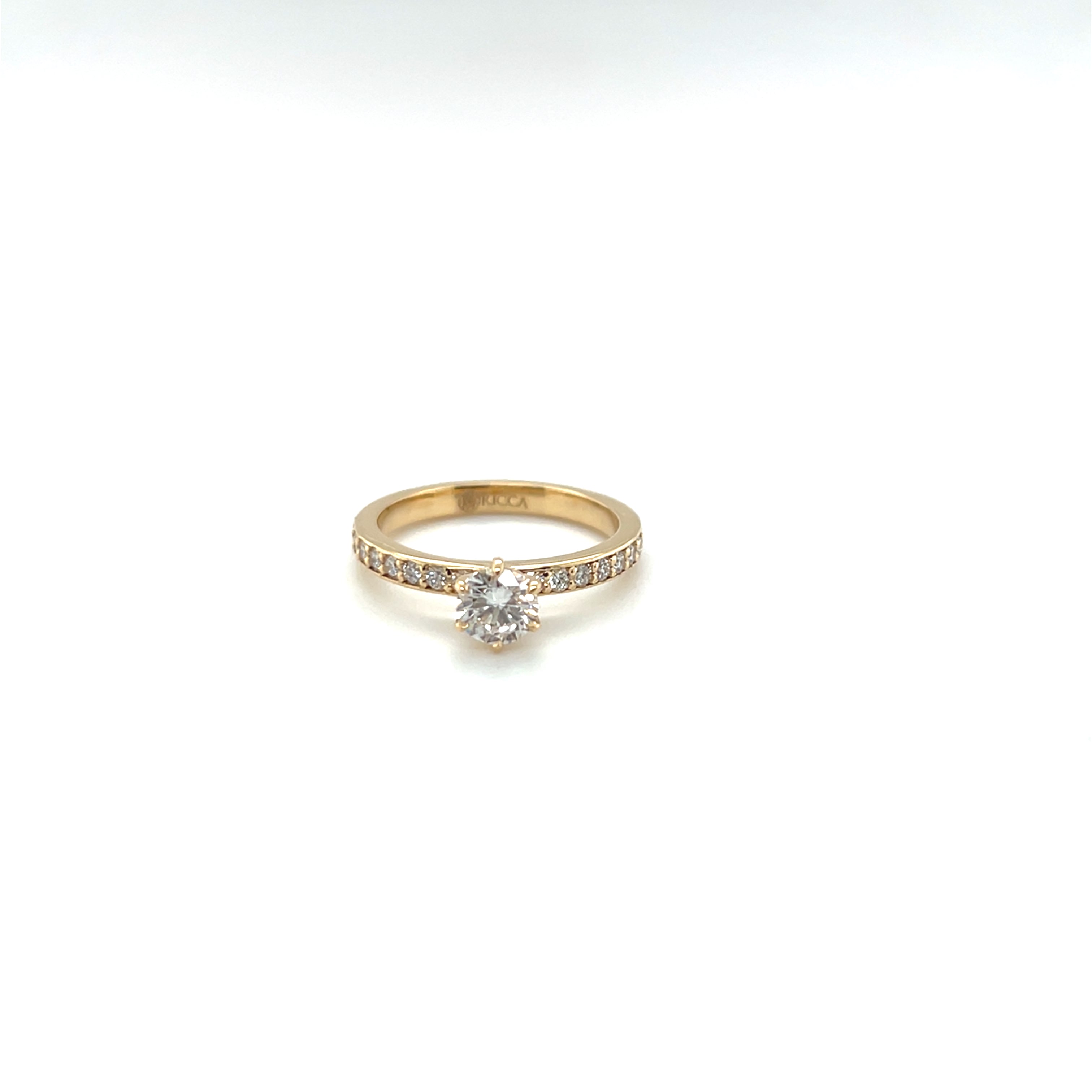 Refined and radiant, this 18k gold ring features a captivating 0.51-carat sustainable diamond as its centerpiece, graded EF color and VVS2 clarity for extraordinary brilliance.