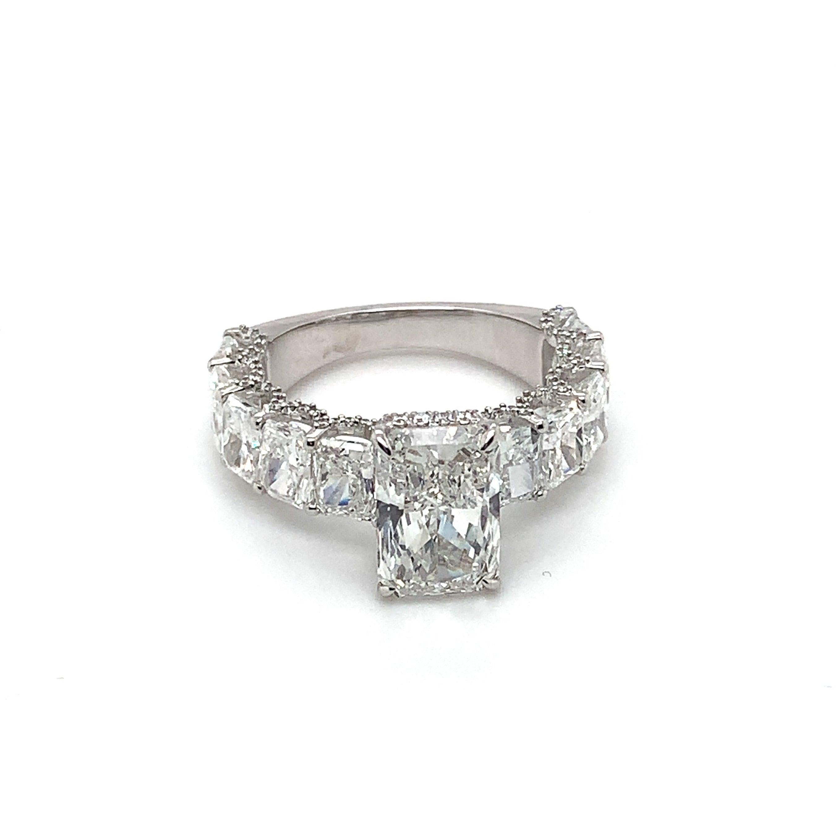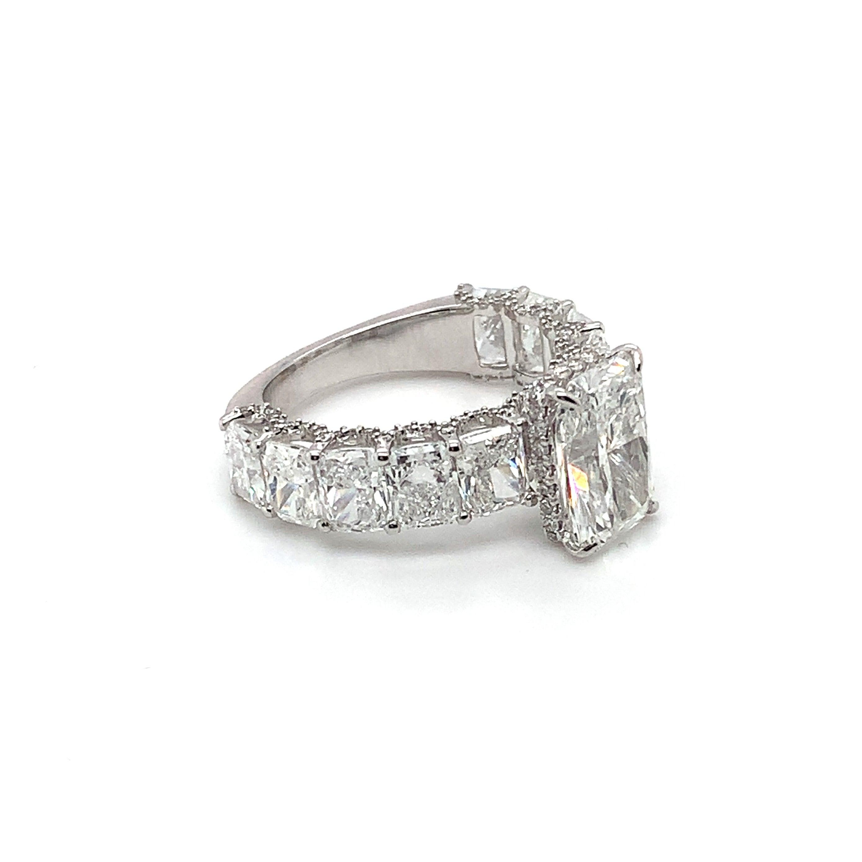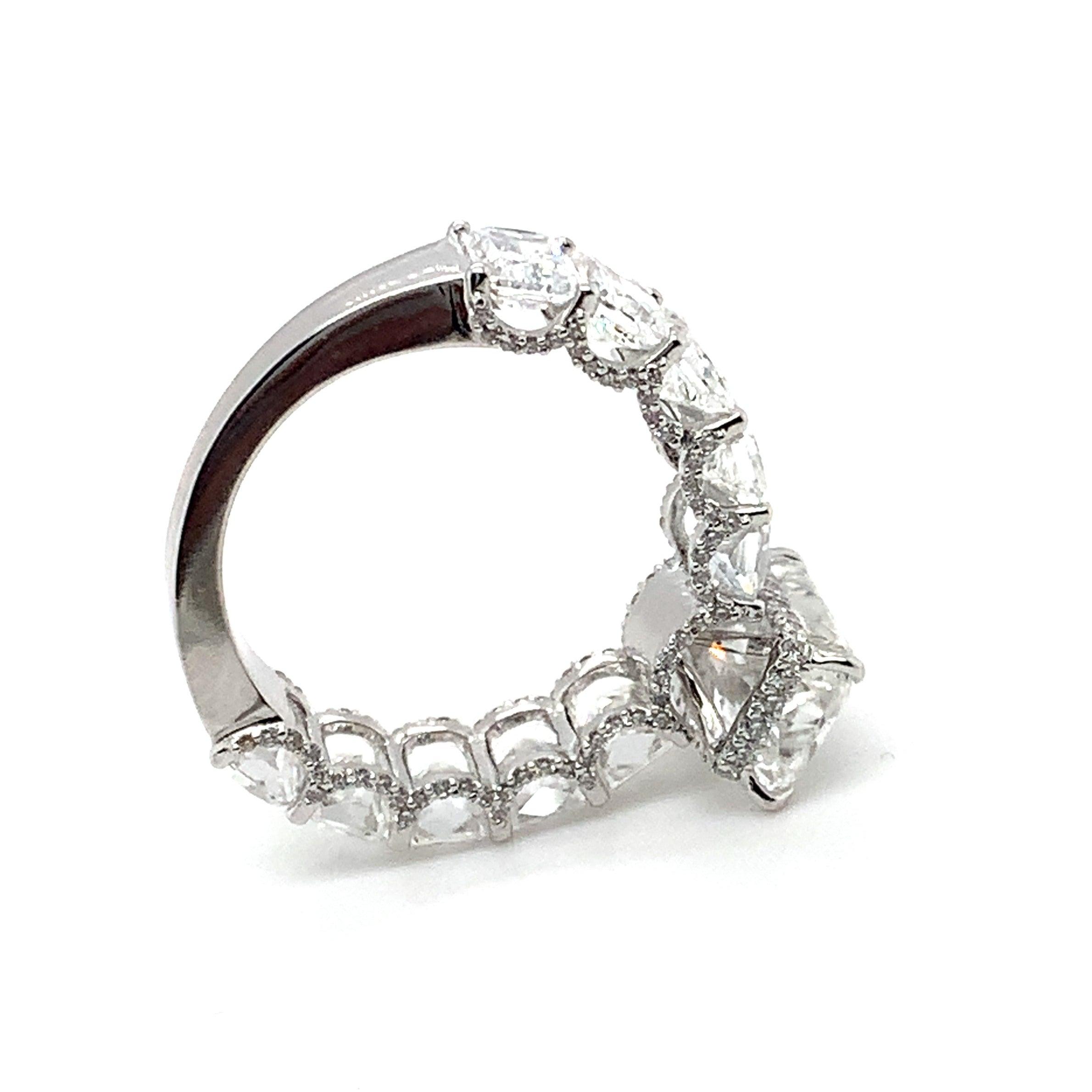 Composto por um total de 8,61 ct em diamantes, o anel possui um diamante central de 3,02 ct, complementado por 10 diamantes ao longo do aro totalizando 5,13 ct.
