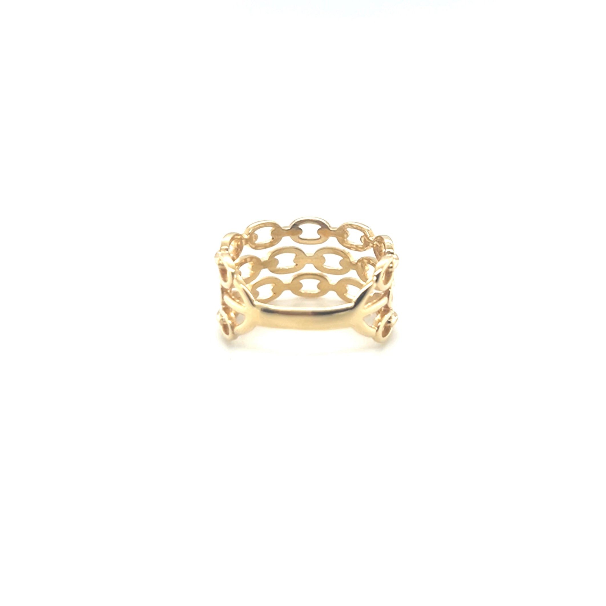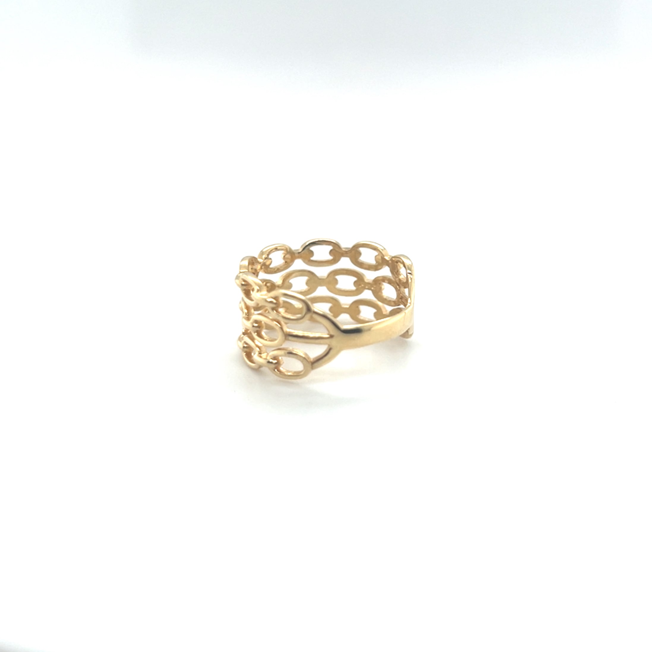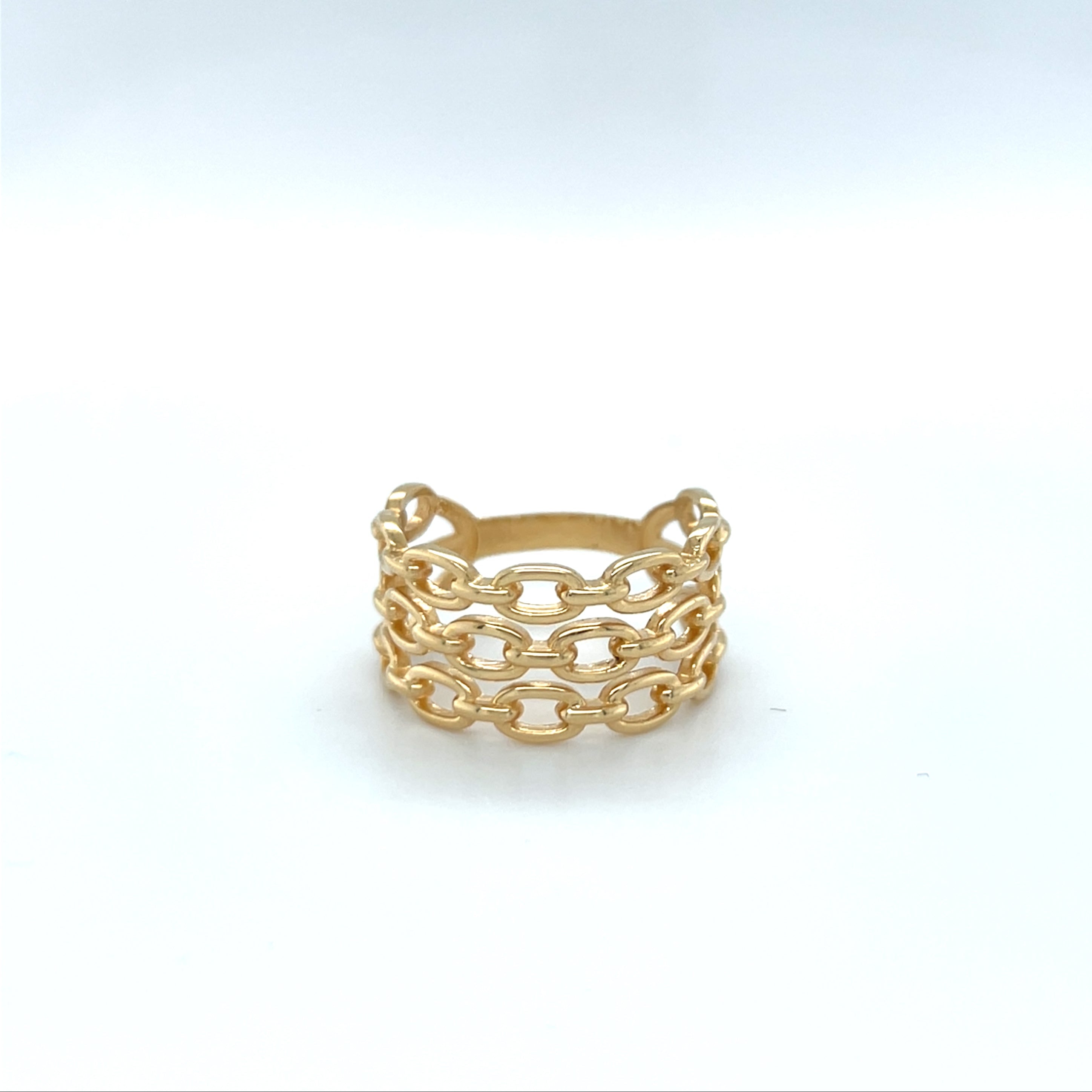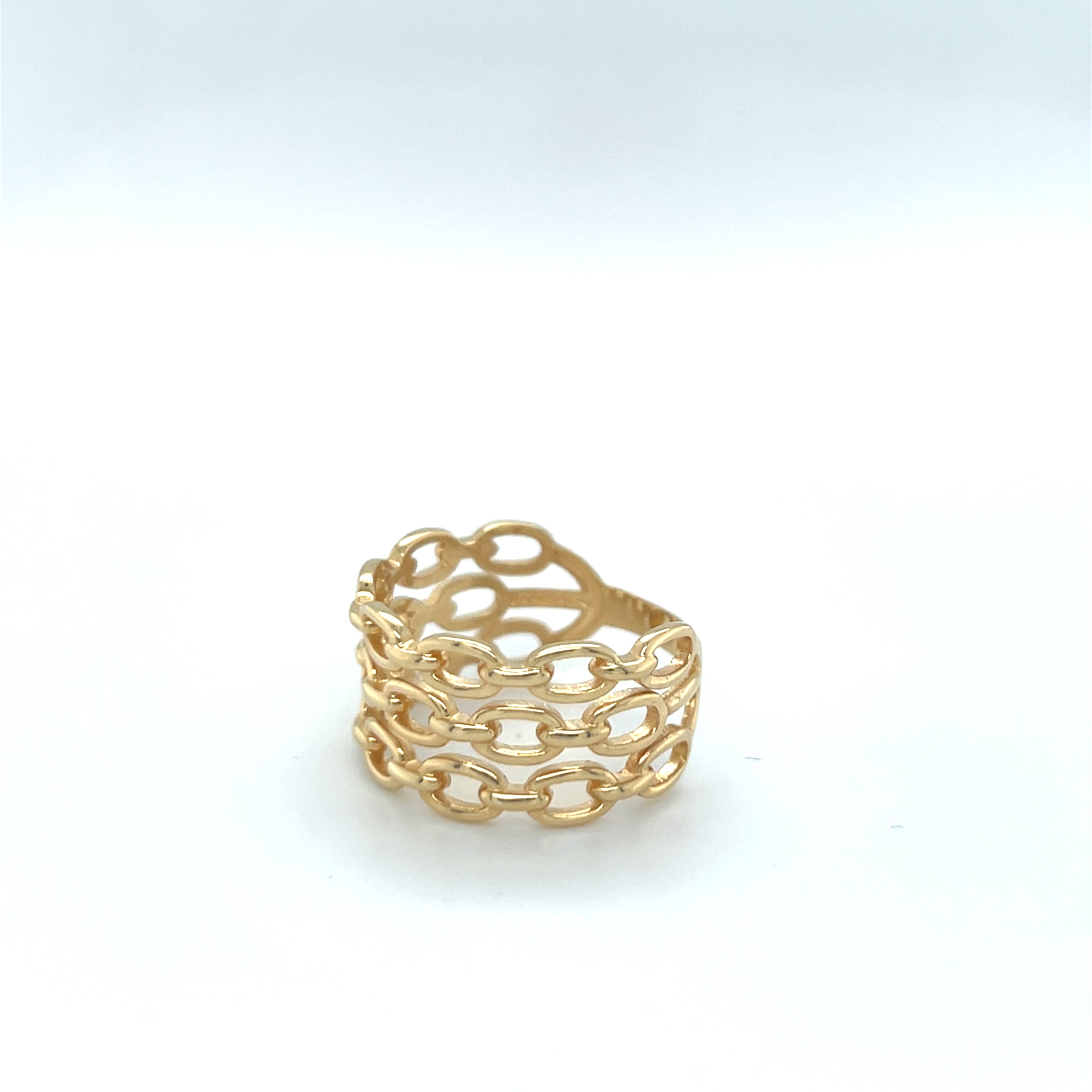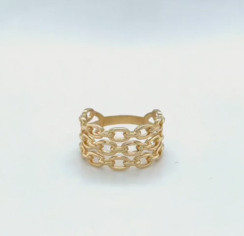 O Anel Aro Triplo Modelo Corrente em Ouro 18k é uma joia que traduz força, estilo e sofisticação em um único design.