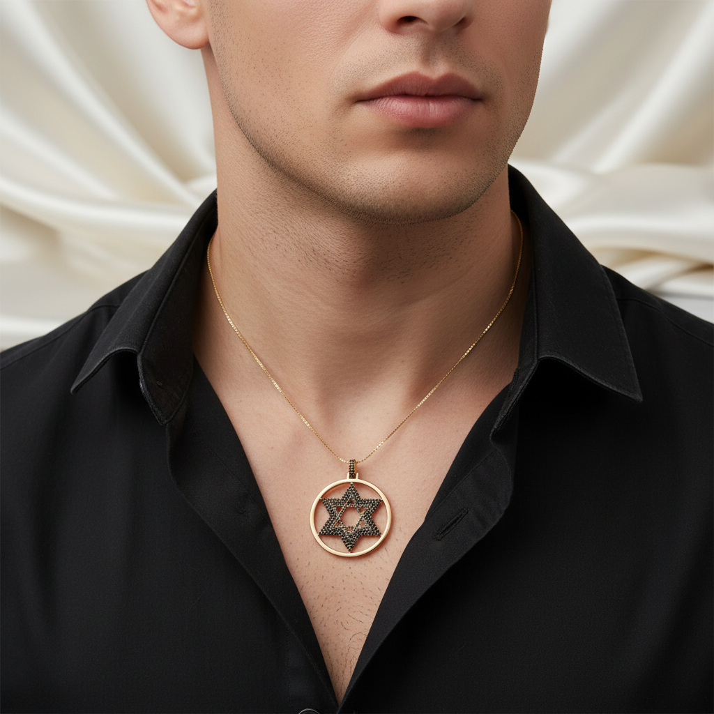 The Bruno Avelar Six‑Point Star Pendant is an impressive and captivating jewelry piece, available in two stunning versions: one set with 220 natural black diamonds (1.06 ct) and the other with 220 white diamonds (1.04 ct), each designed to highlight your personality and style.