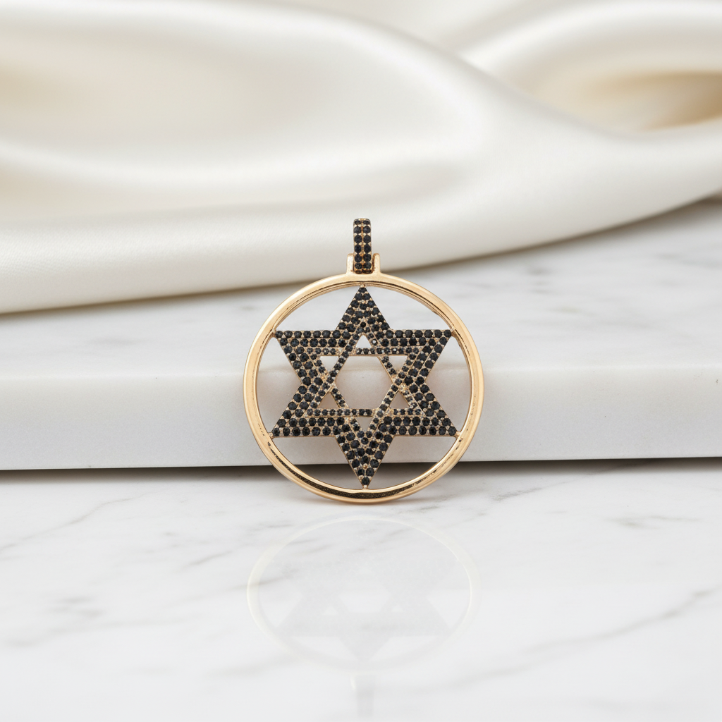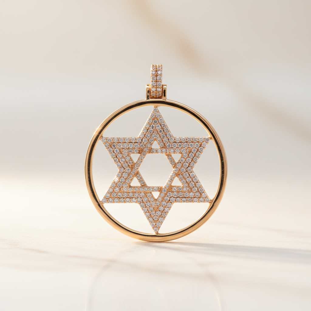 With its elegant, contemporary design, this piece showcases intense brilliance and sophistication. The six‑point star motif, framed by a refined halo, creates a striking contrast that enhances the visual impact.