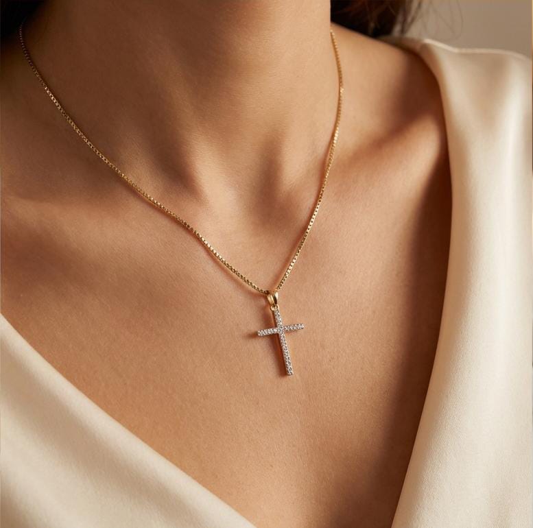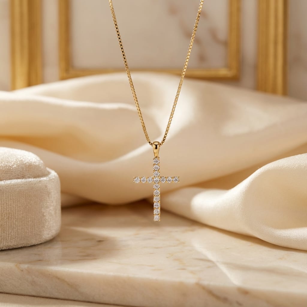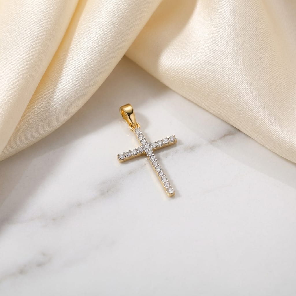 More than a jewel, this 18k gold cross pendant is a personal symbol of faith and refined strength. Meticulously set with 21 natural diamonds of 1.35 mm each, it captures moments of gratitude, resilience, and spiritual connection.