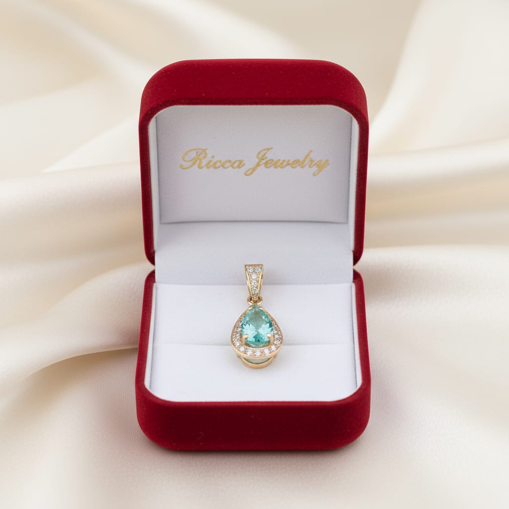 Conhecida por seu cor vibrante e sua raridade, esta pedra preciosa é extraída exclusivamente nas regiões brasileiras da Paraíba, tornando-a um tesouro nacional de valor inestimável.