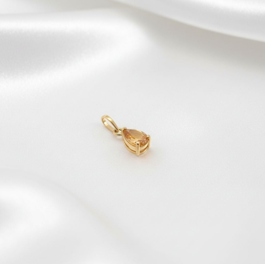 Featuring a natural citrine in a graceful pear cut, approximately 6 x 4 mm, this pendant stands out for its vibrant golden hue, symbolizing energy, joy, and positivity. Its minimalist design enhances the brilliance of the gemstone, offering timeless versatility for both everyday looks and meaningful occasions.