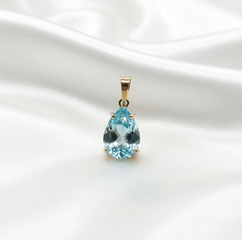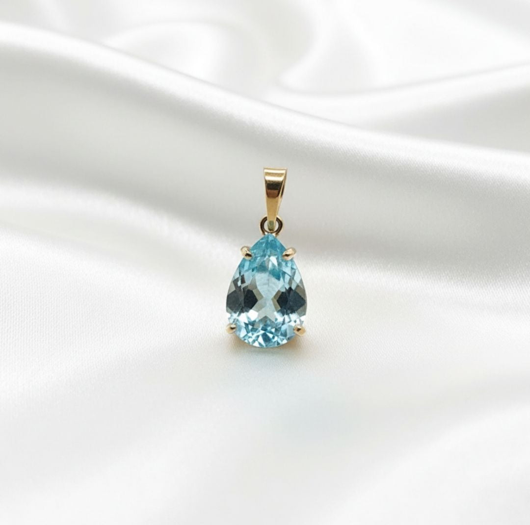 Adicione um toque de sofisticação ao seu visual com o pingente Gota em Ouro 18k, adornado com uma deslumbrante pedra topázio.