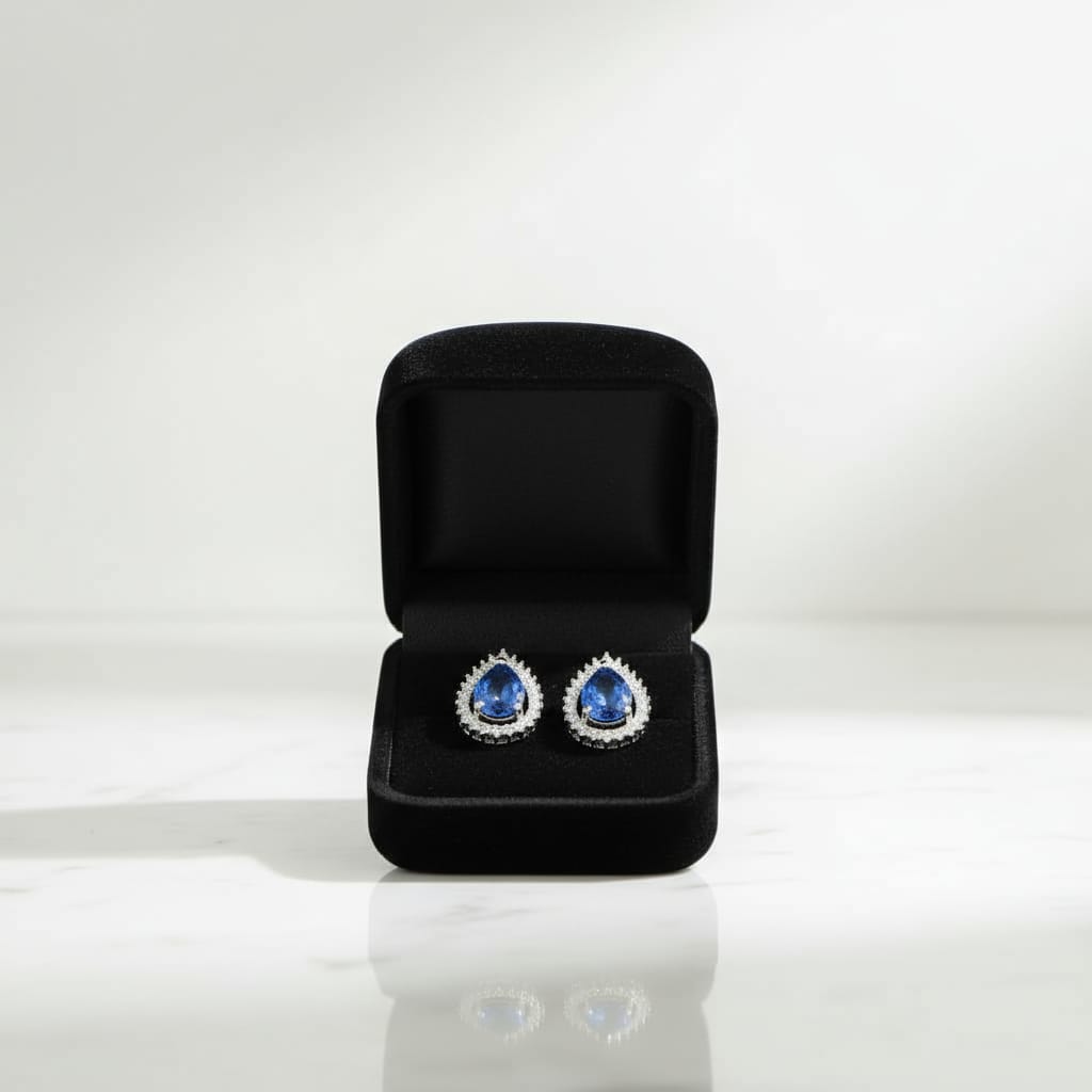 Adicione um toque de luxo e sofisticação ao seu visual com nossos Brincos Pedra Safira Lapidação Gota e Diamantes.