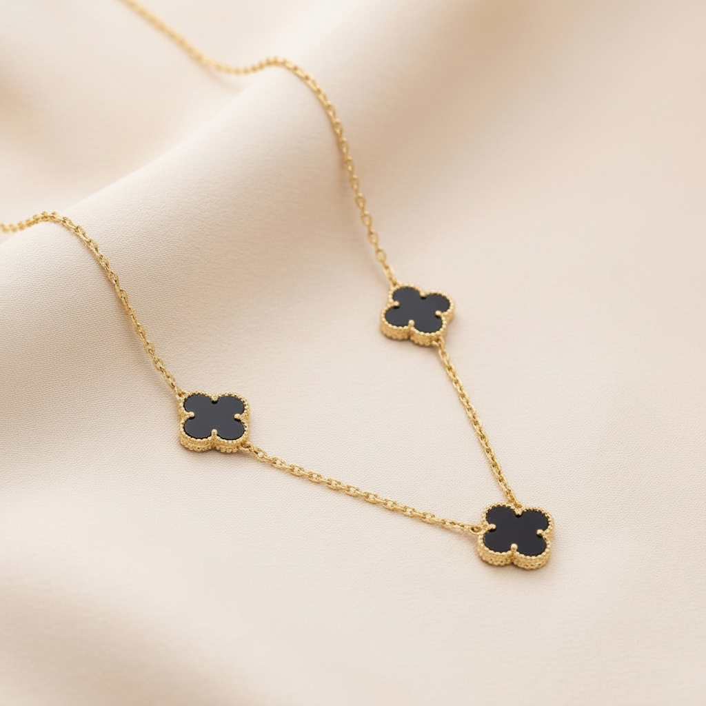 Weighing just 7.8 g (0.28 oz), this necklace balances luxury and comfort with effortless grace. The deep black hue of the onyx contrasts beautifully with the rich gold tone, adding depth and distinction to every outfit. Perfect for women who appreciate understated elegance and the power of meaningful design.