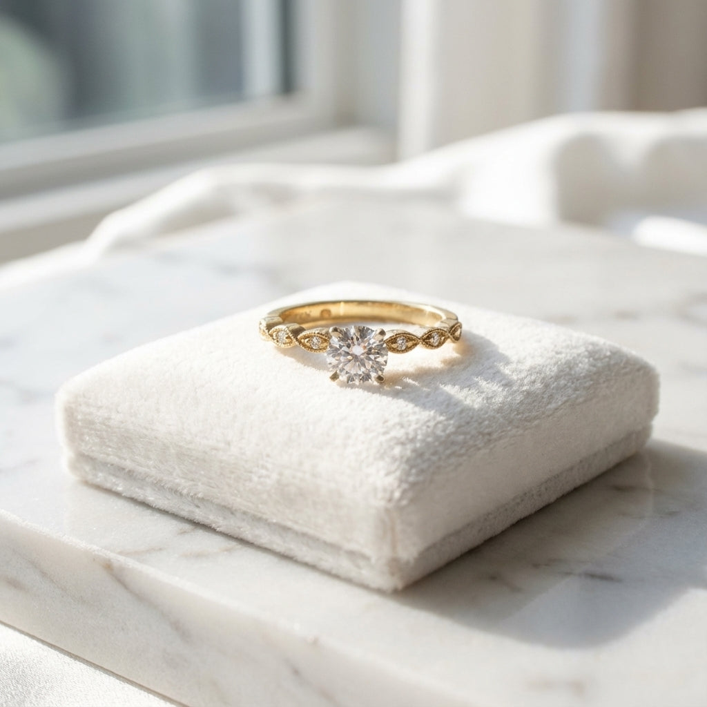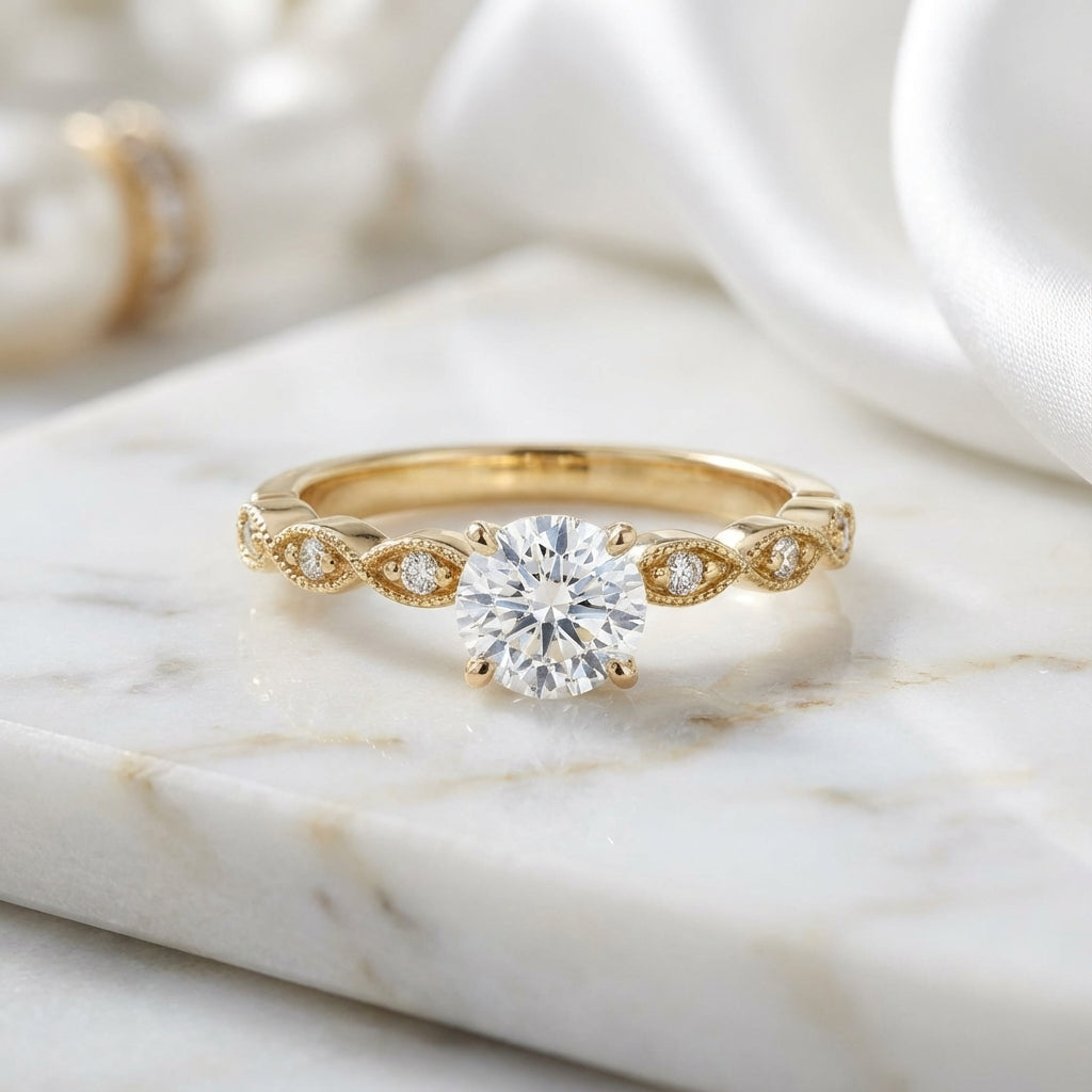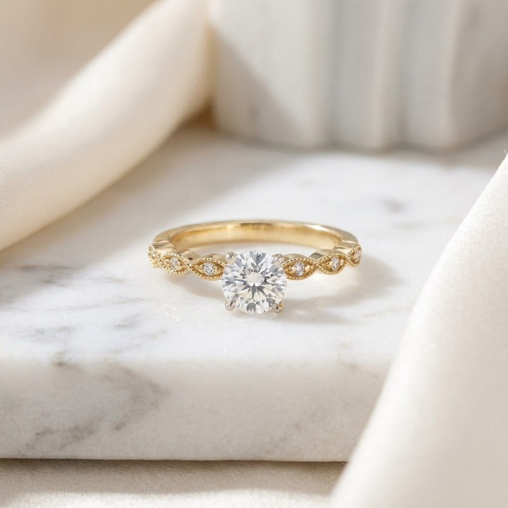 Experience elegance with our 18k Yellow Gold Diamond Ring, a unique creation that combines timeless design with modern sustainability.