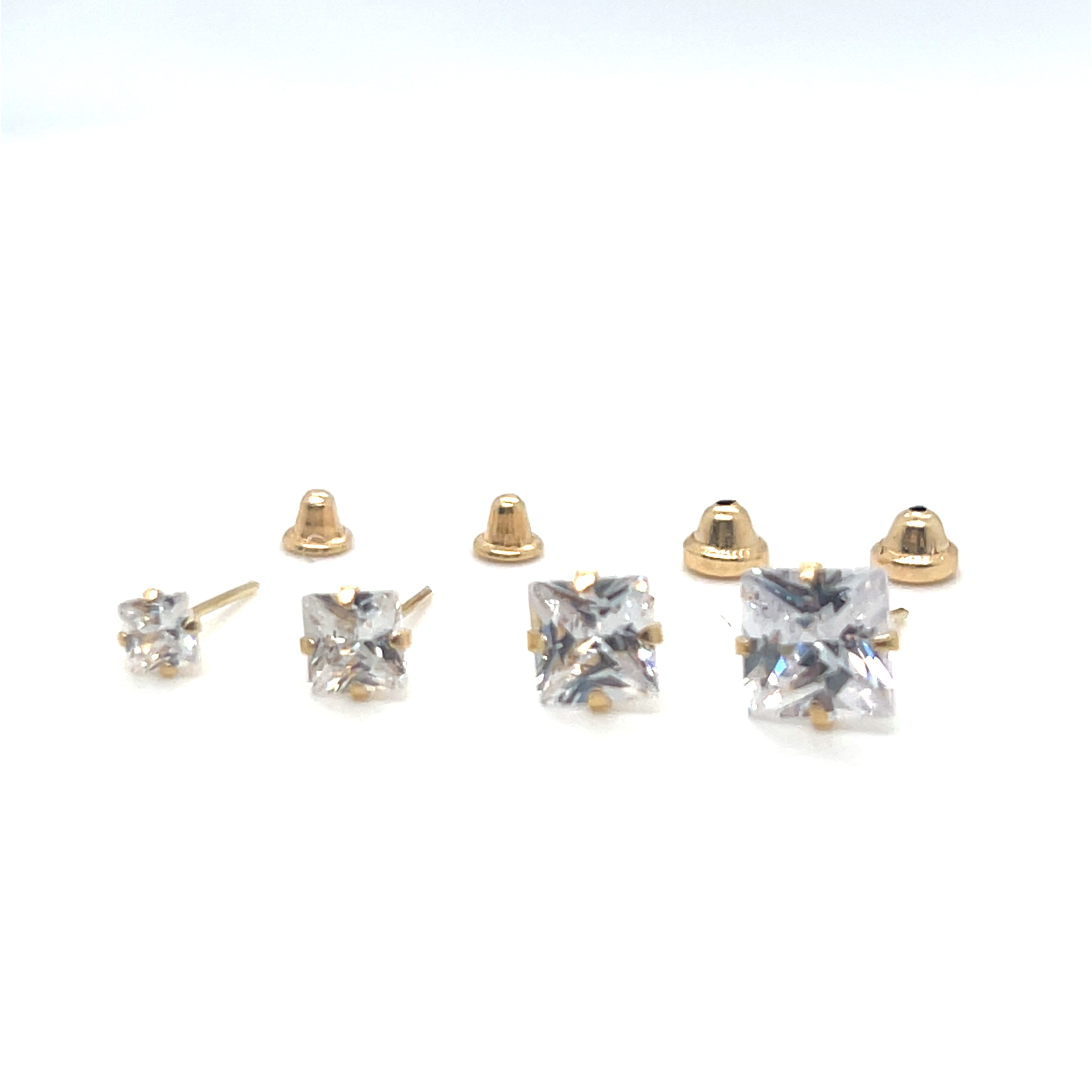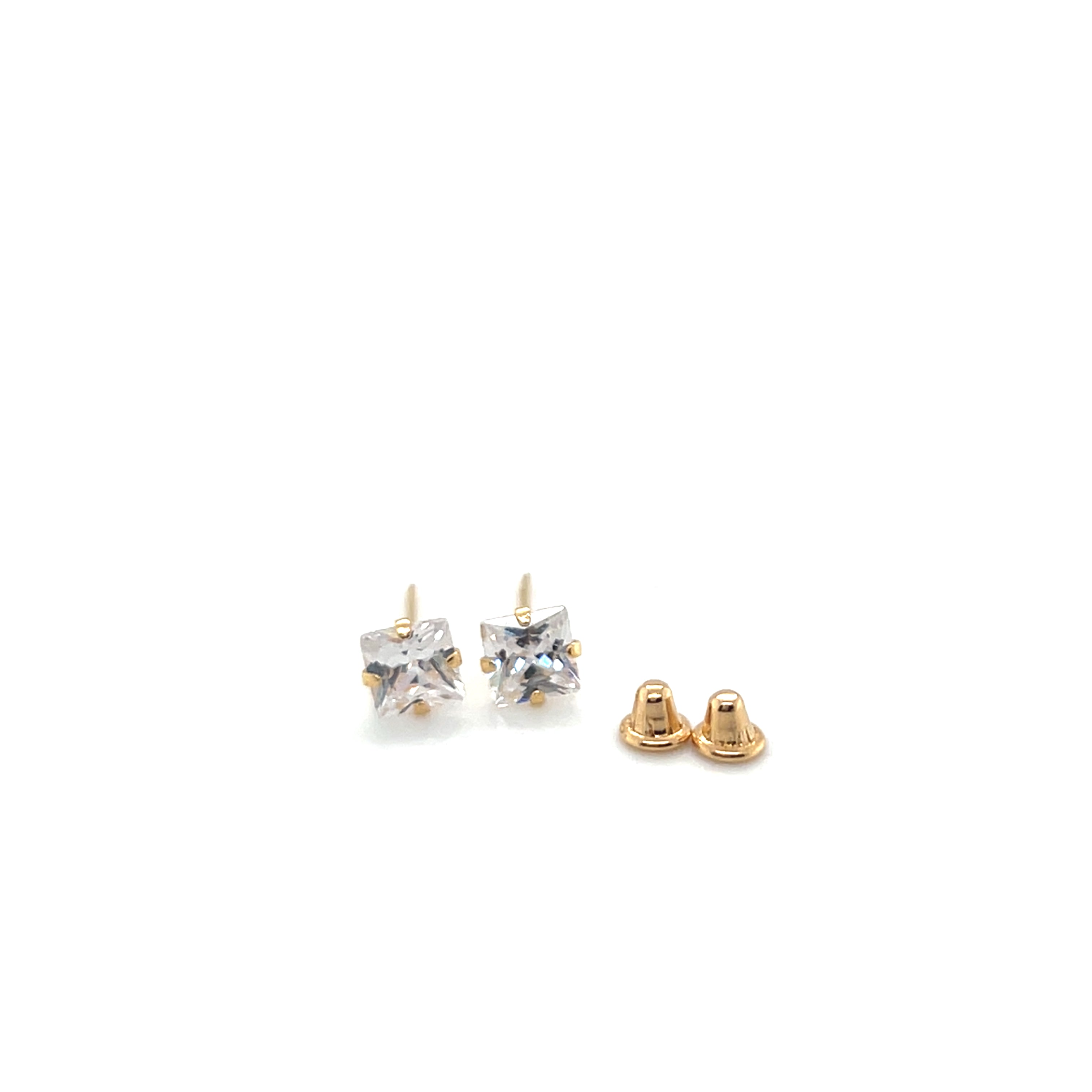 Estes brincos de Ouro 18k com zircônias quadradas de 6mm são a combinação perfeita de elegância e versatilidade.