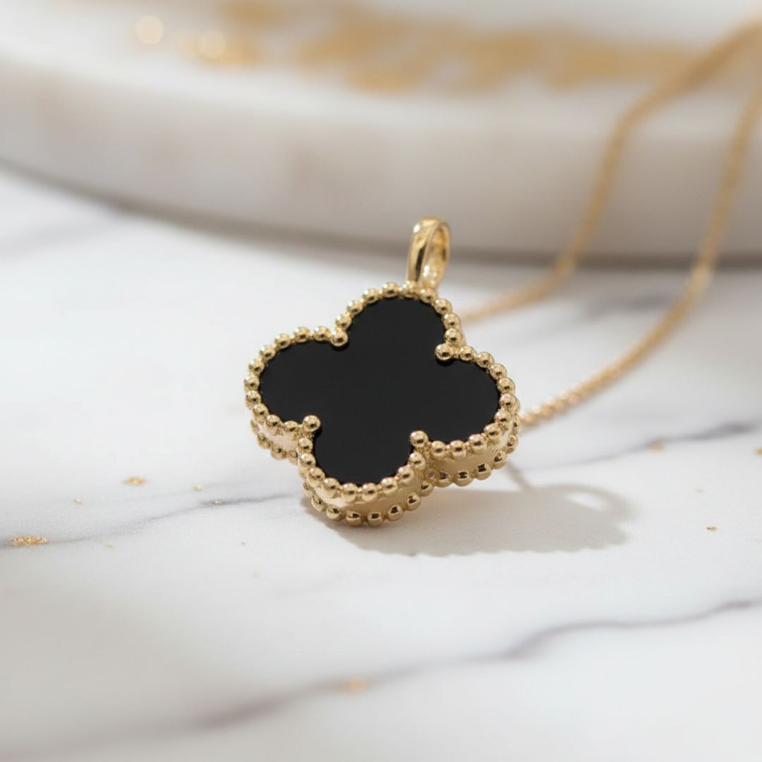 This 18k Gold Clover Pendant perfectly blends classic charm with modern refinement.