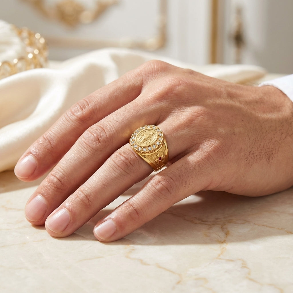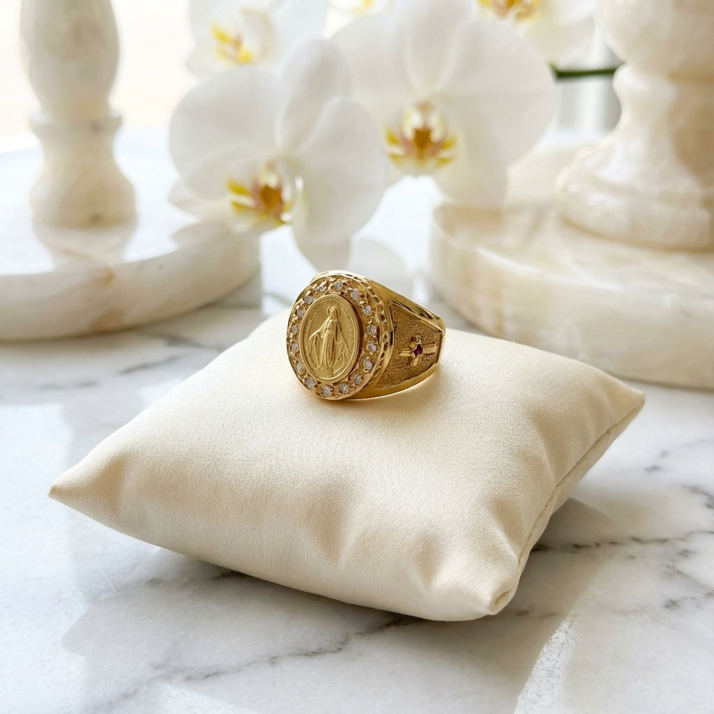 With an approximate weight of 6.3 g (0.22 oz), this ring is more than jewelry, it is a testament to faith and refined elegance.