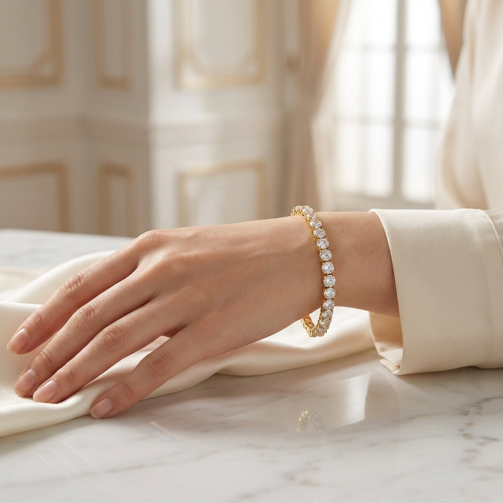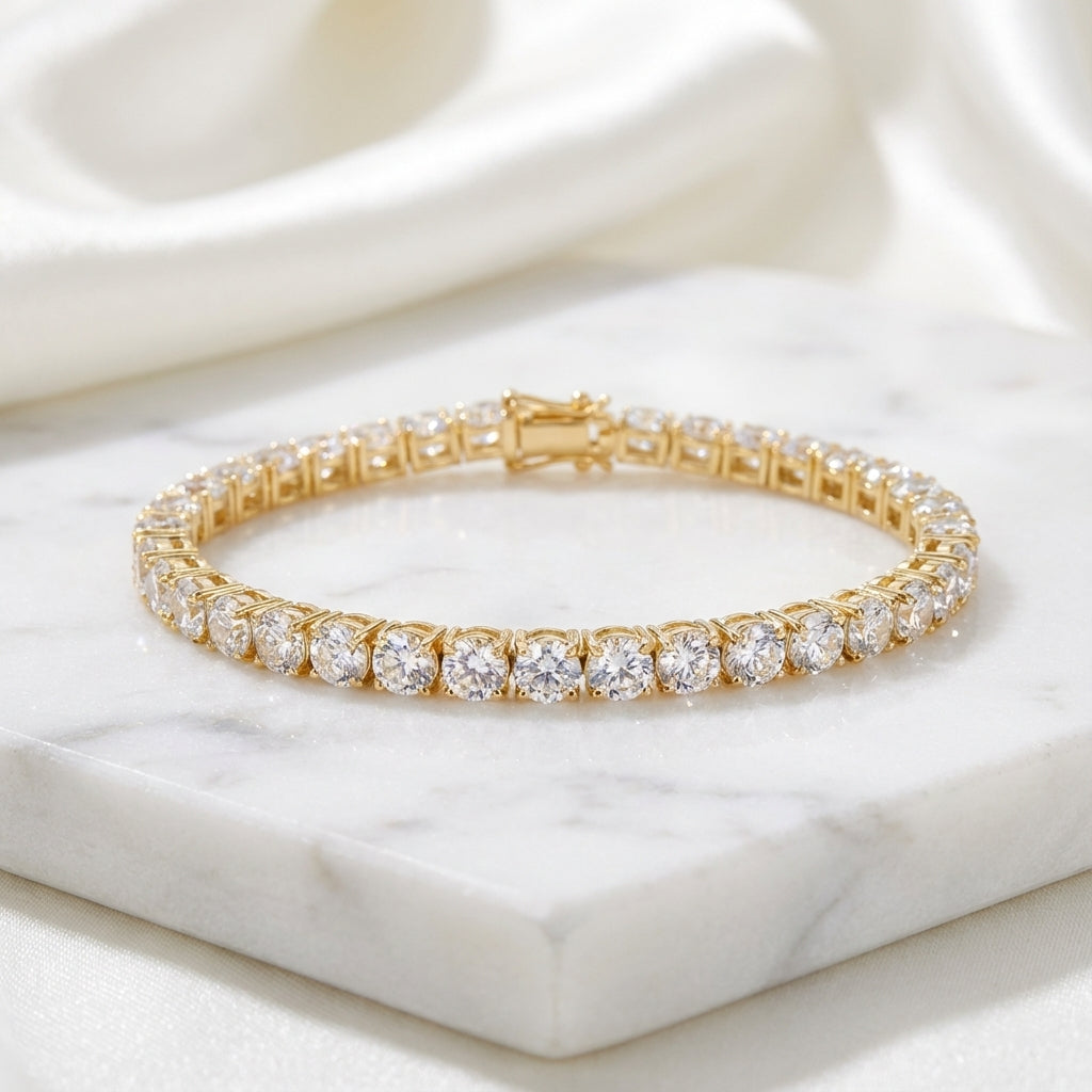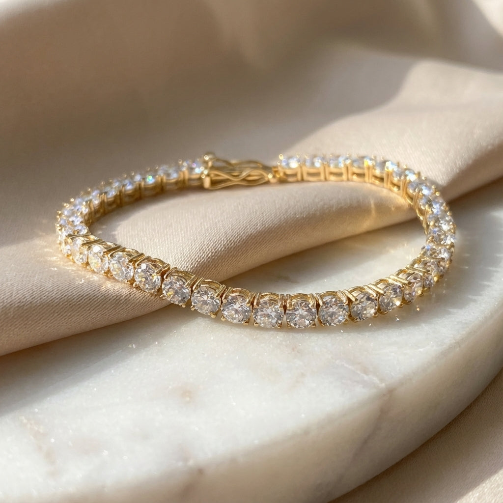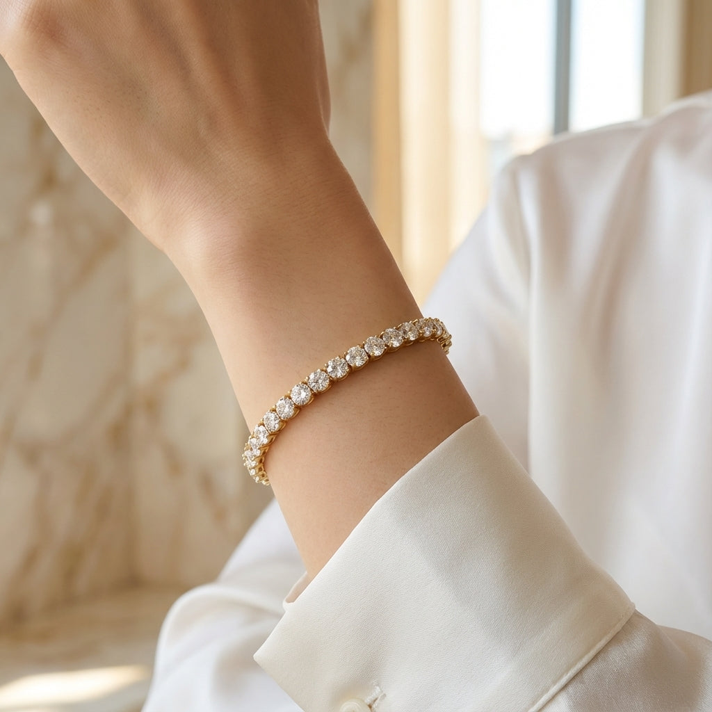 A Pulseira Riviera em Ouro 18k com Zircônias de aproximadamente 4,5 mm é a expressão máxima do requinte.