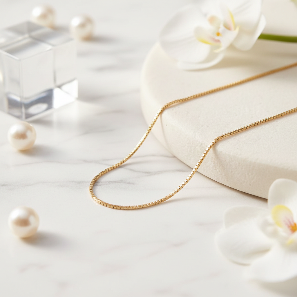 Adicione um toque de sofisticação atemporal ao seu estilo com nossa Corrente Veneziana em Ouro 18k.