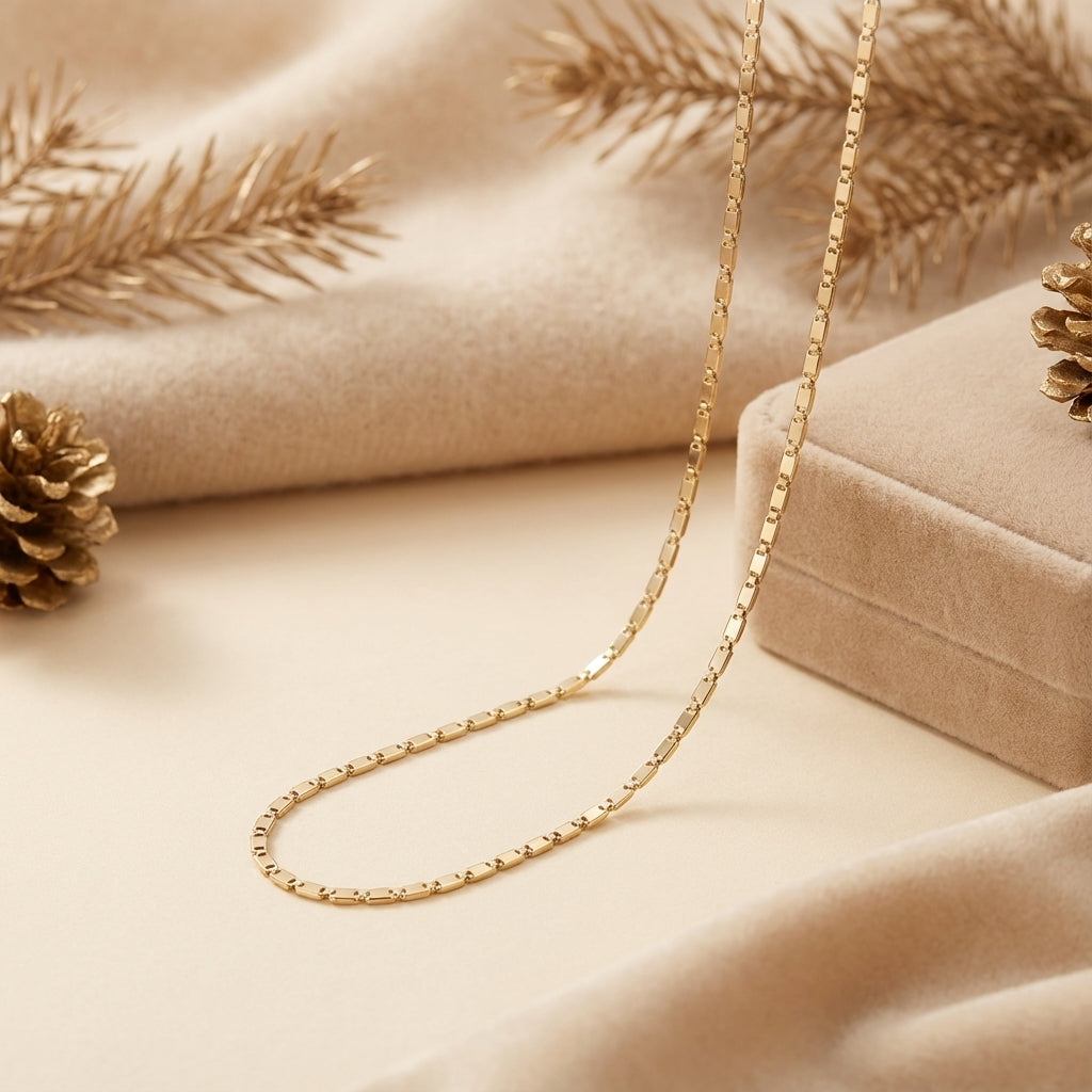 Descubra a moda atemporal com a Corrente em Ouro 18k Modelo Piastrine, uma joia que combina sofisticação e design moderno.
