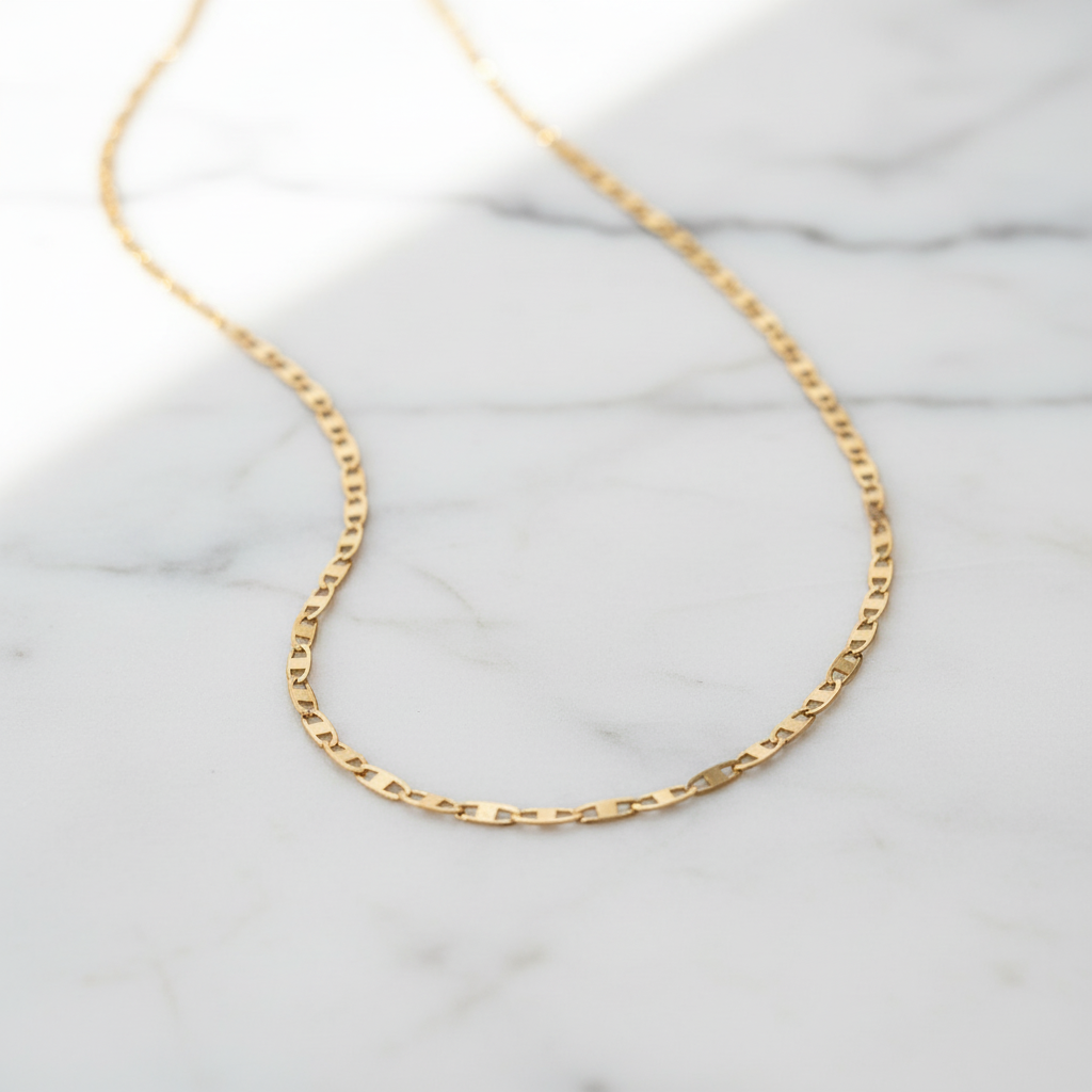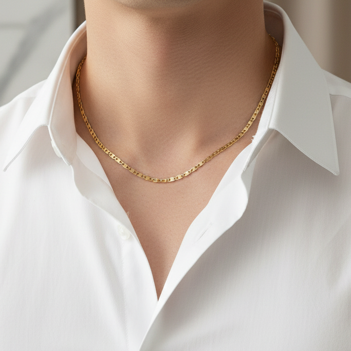 Prepare-se para se apaixonar pela elegância delicada da Corrente de Ouro modelo Piastrina 18k, com sua largura de 1,3 mm.