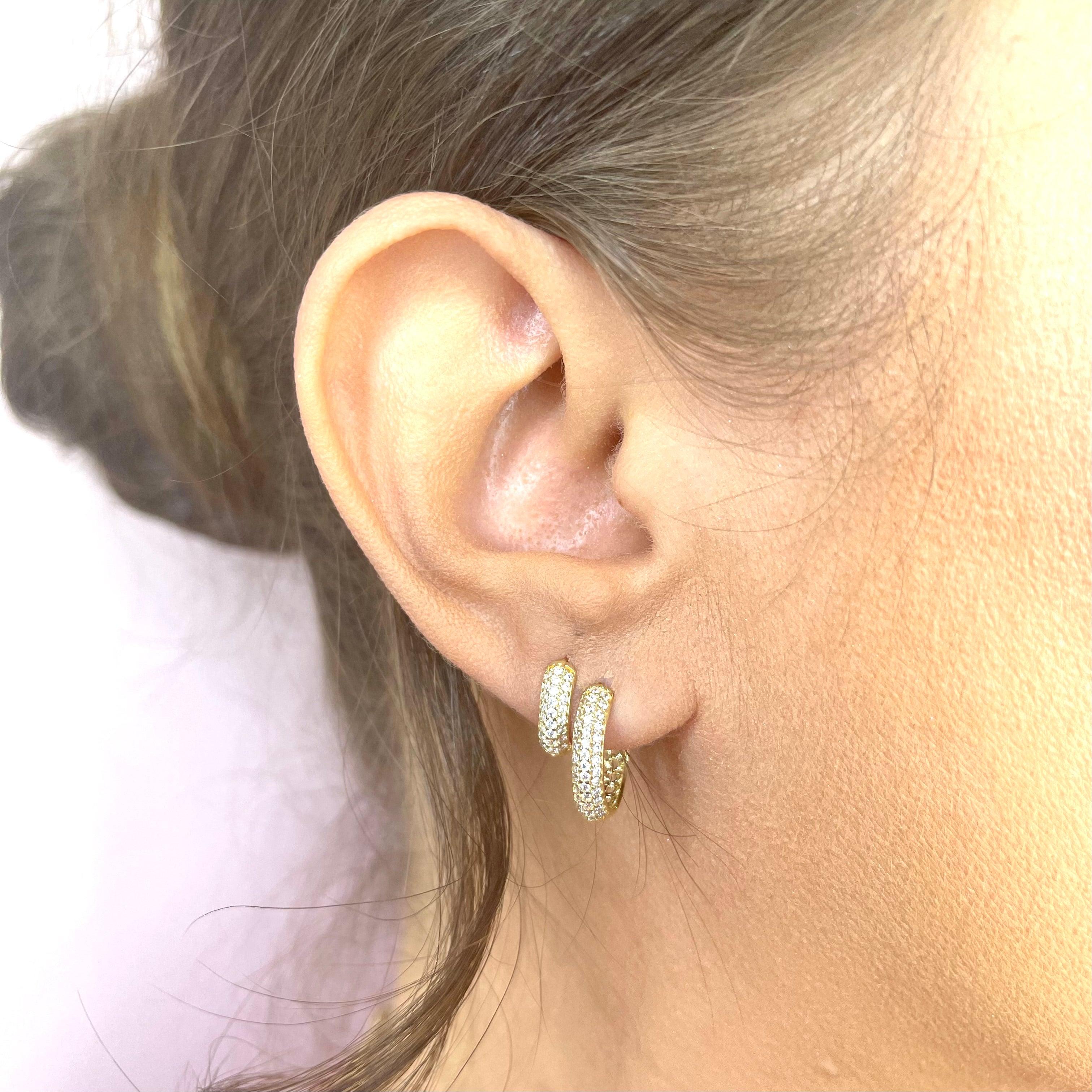 Meticulosamente desenhado, este brinco irradia luxo e elegante, combinando o brilho das zircônias reluzentes com os delicados detalhes circulares vazados.