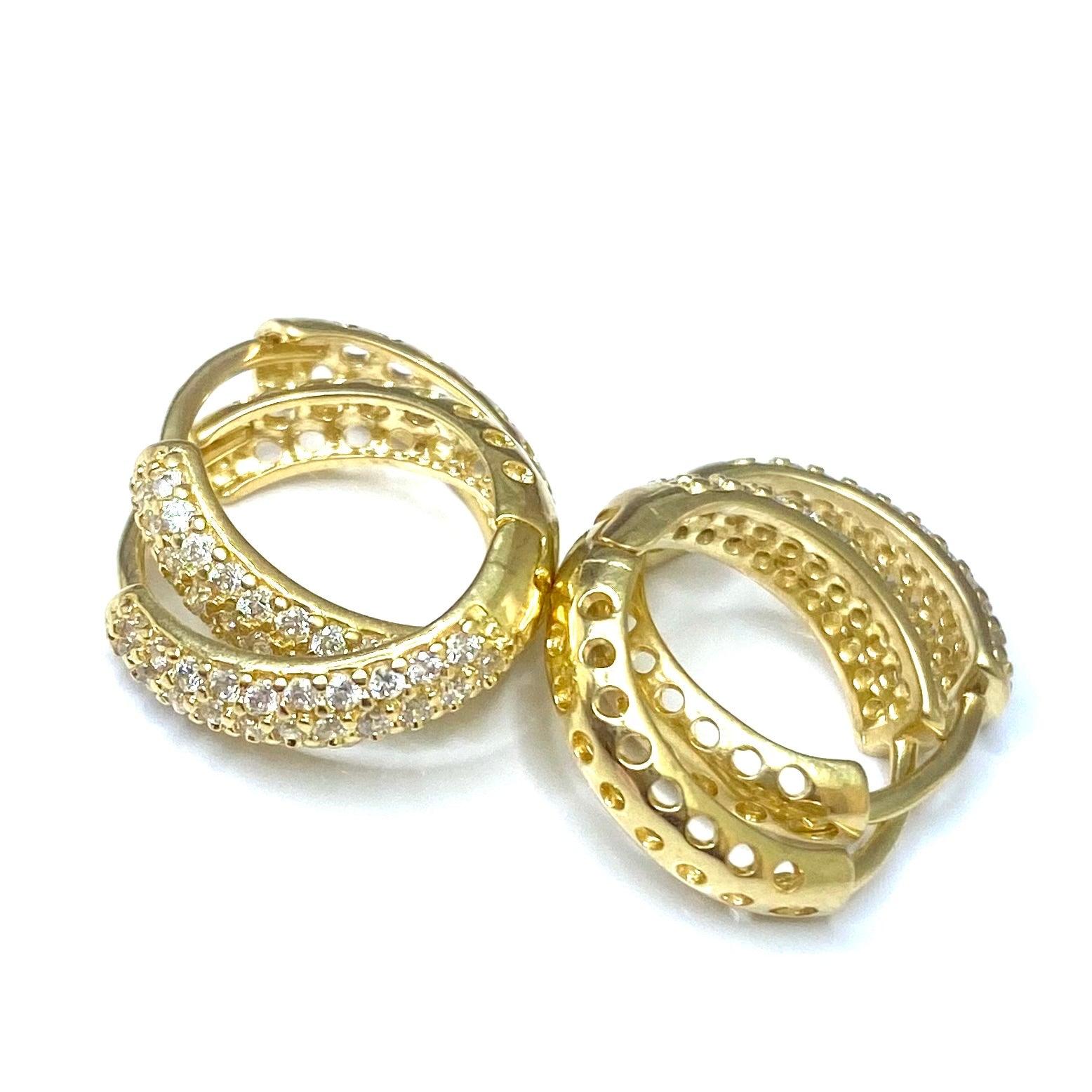 Brinco Argola com Zircônias e Detalhes Circulares Vazados
