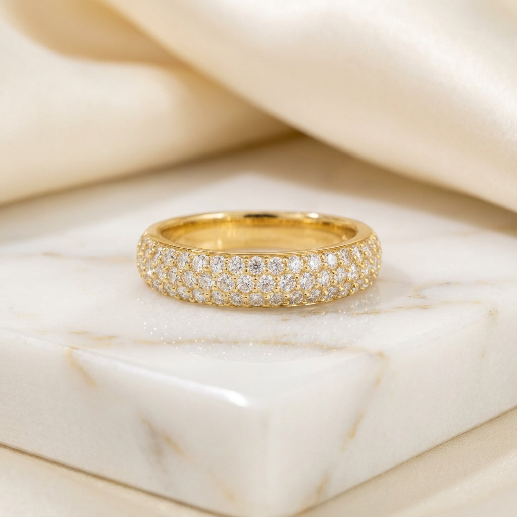 Set with 52 meticulously selected lab-grown diamonds, this ring exudes brilliance in every angle. Each stone is precisely pavé-set to enhance its sparkle and catch the light with fluid movement.