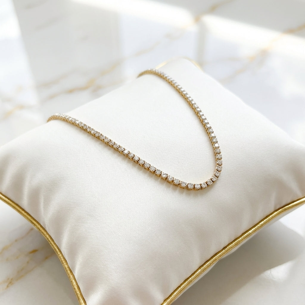 The Riviera Necklace in 18k Yellow Gold is a radiant statement of elegance and sustainable luxury.
