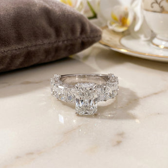 Con un peso total de 8,61 ct, el diseño se centra en un impresionante diamante de 3,02 ct en el centro, complementado a la perfección por 10 diamantes de acento en la banda, que suman un total de 5,13 ct. Cada piedra ha sido cuidadosamente seleccionada para garantizar un brillo y un resplandor incomparables.