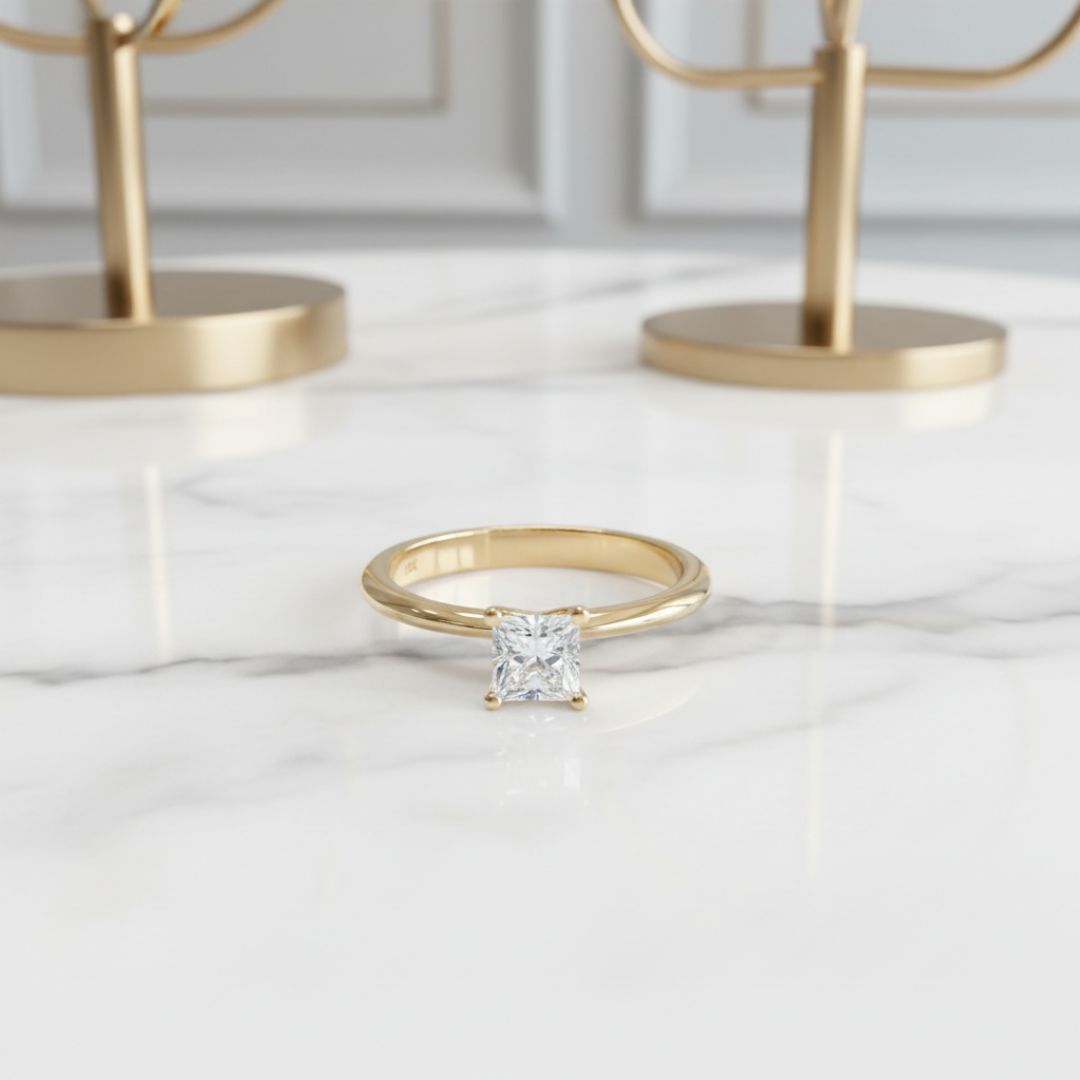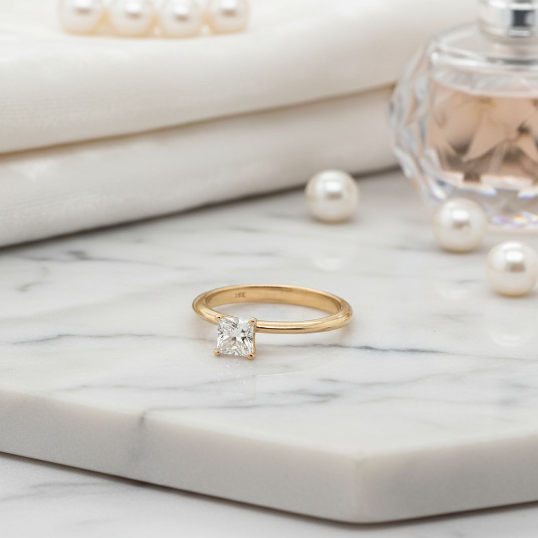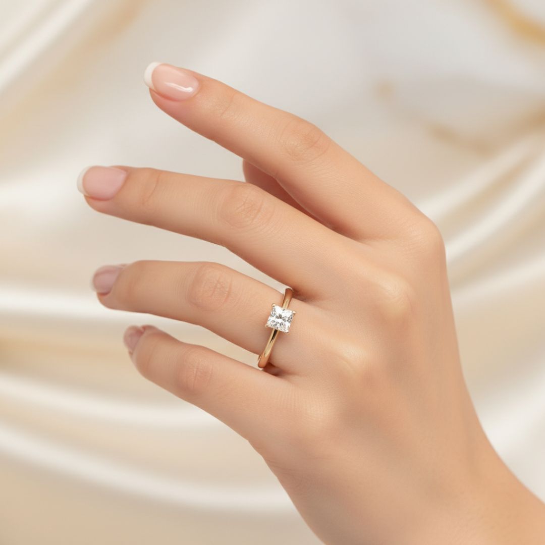 Anillo solitario de diamante de talla cuadrada