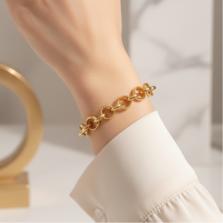Presentamos la Pulsera de Oro 18k Modelo Eslabón Portugués, máxima expresión de lujo y sofisticación.