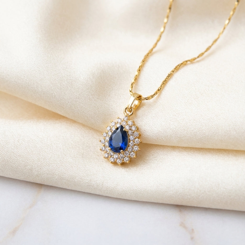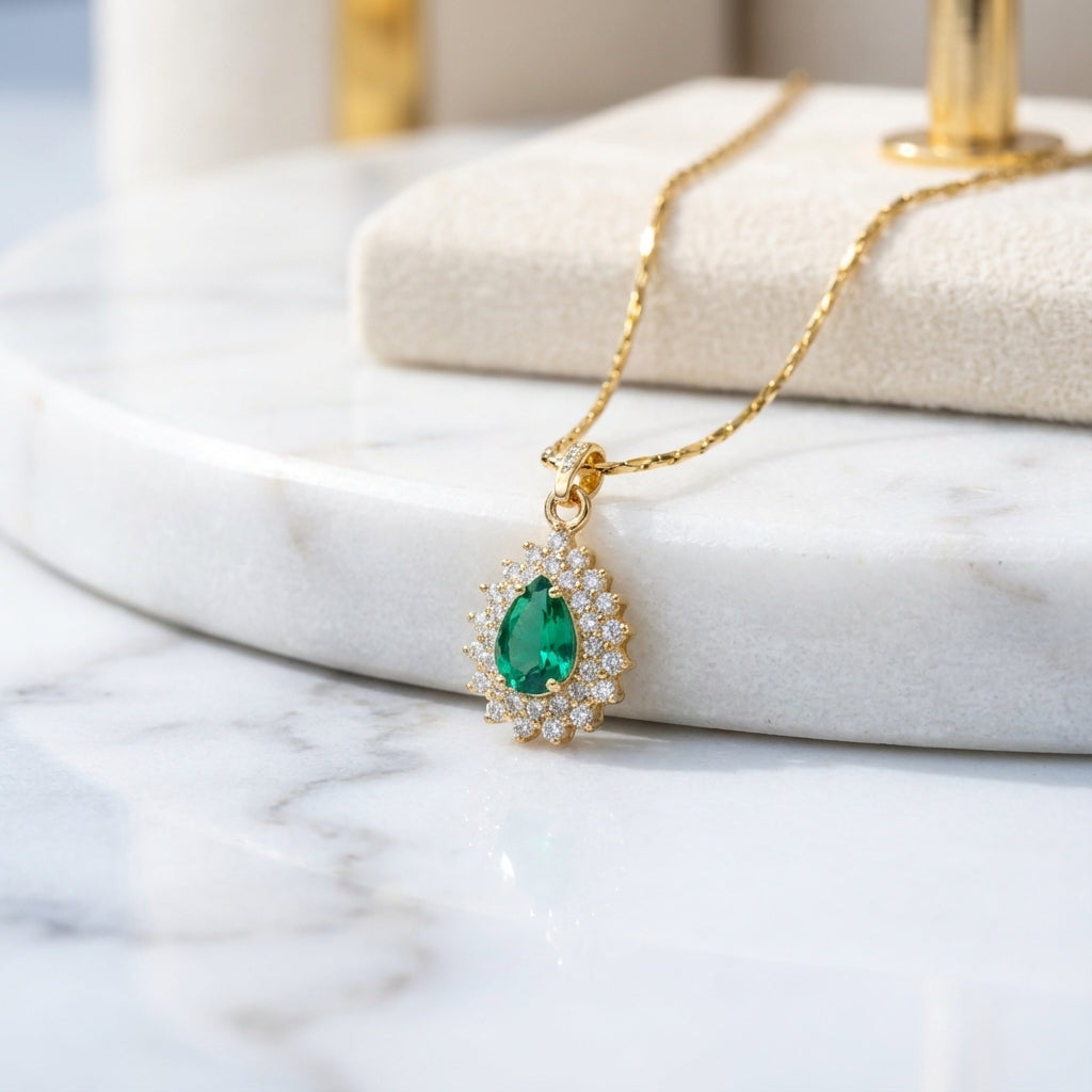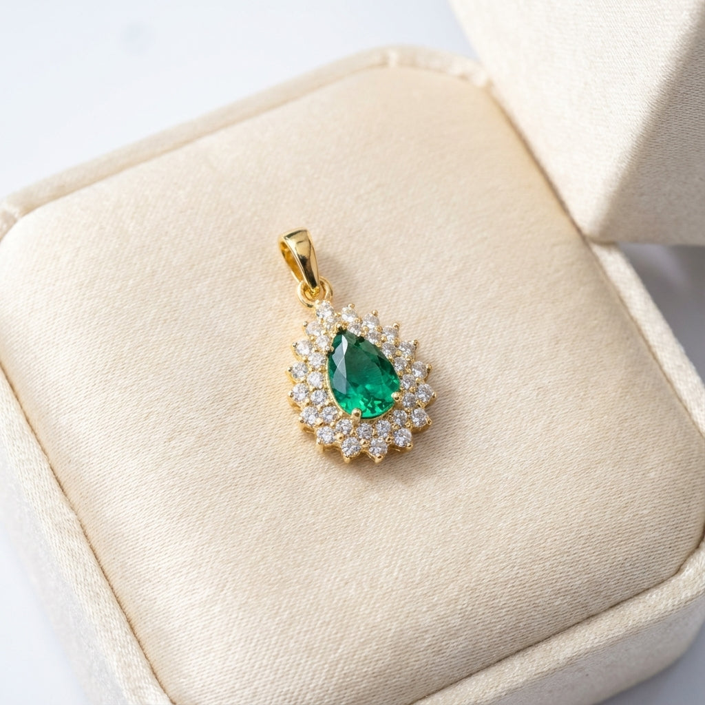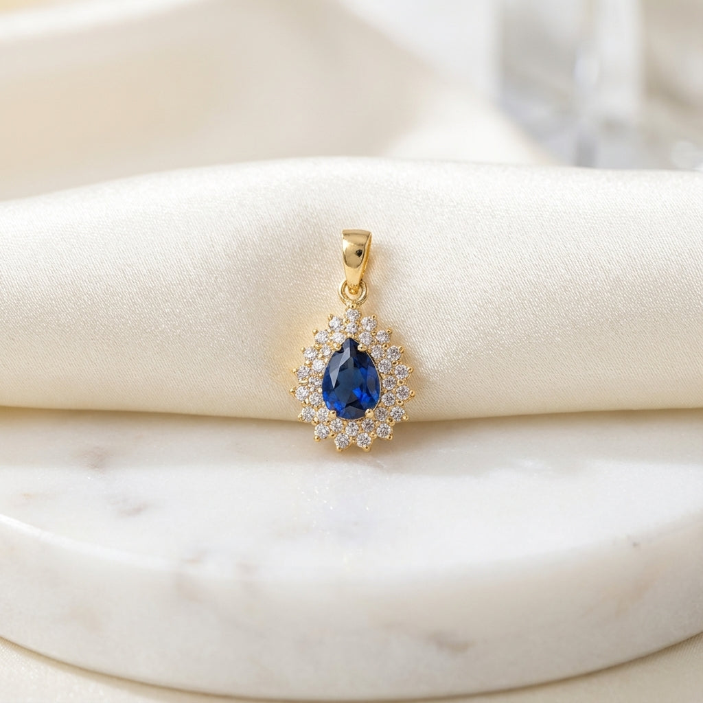 Este colgante de circonita de corte lágrima celebra la sofisticación y la serenidad, aportando un brillo que simboliza la tranquilidad y la sabiduría.