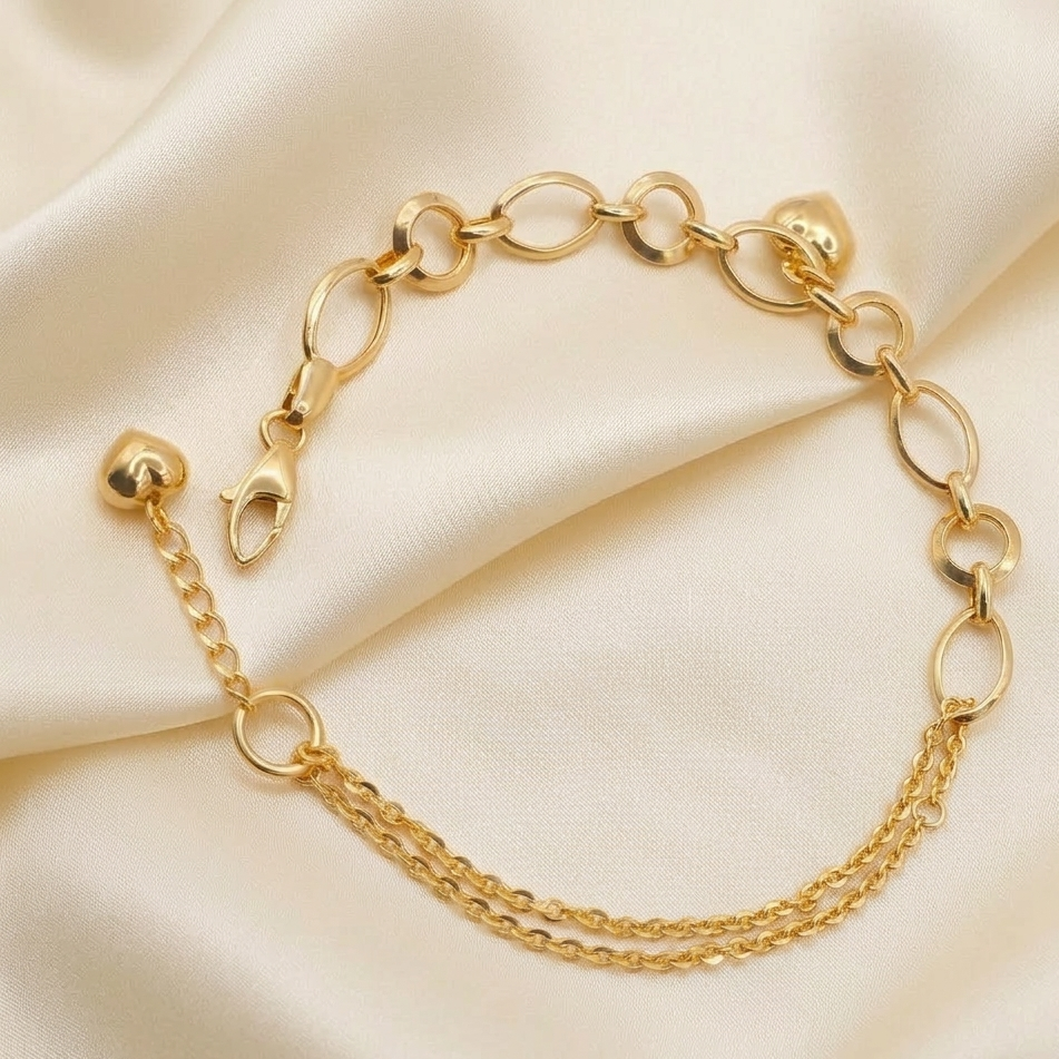- Diseño: Eslabones ovalados con colgante de corazón.