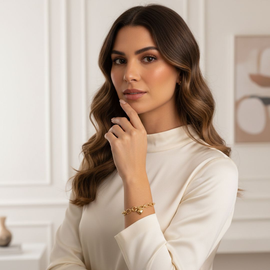 Lo más destacado es el encantador colgante de corazón, que añade un toque de romanticismo y personalidad a la pieza.
