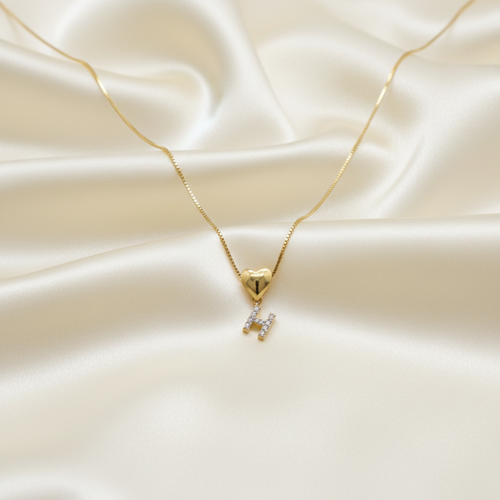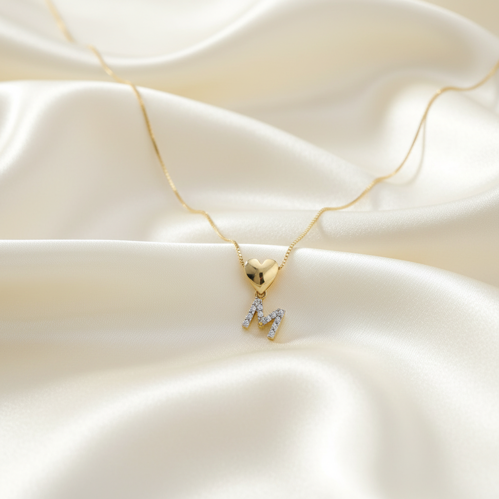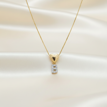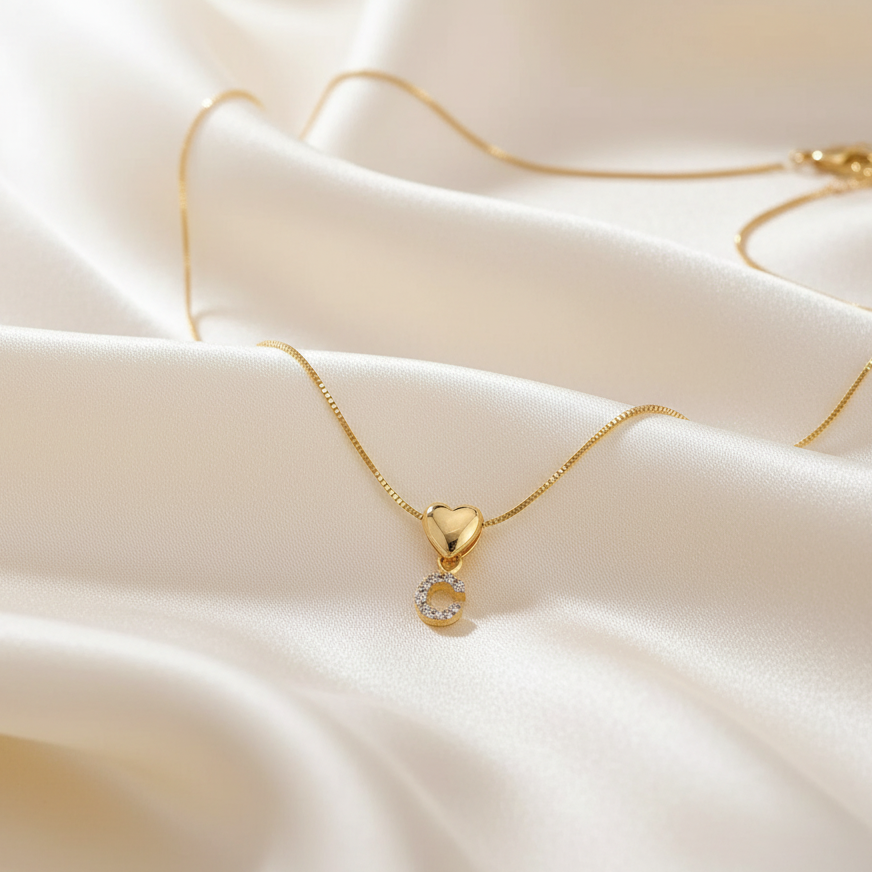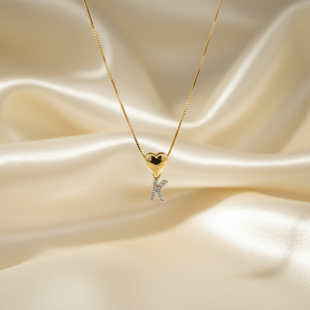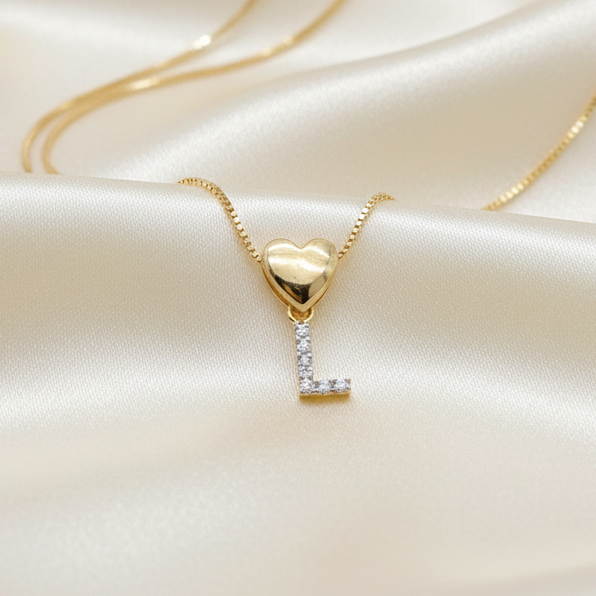 Chain Necklace with heart-shaped pendant and an initial in 18K Gold
