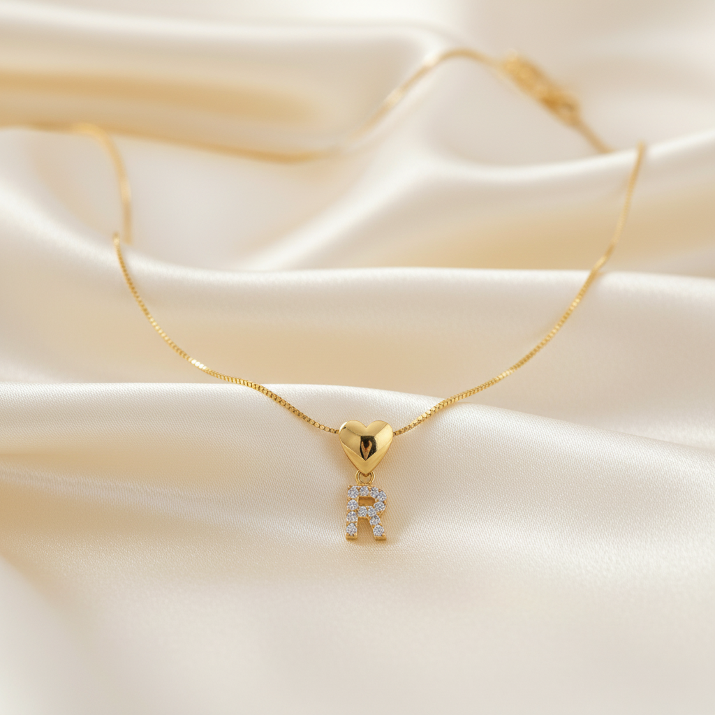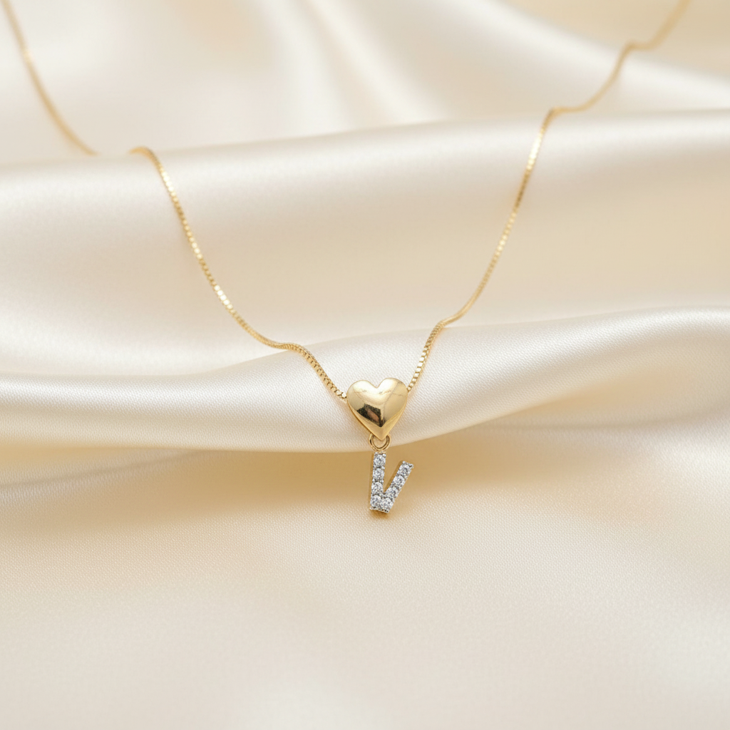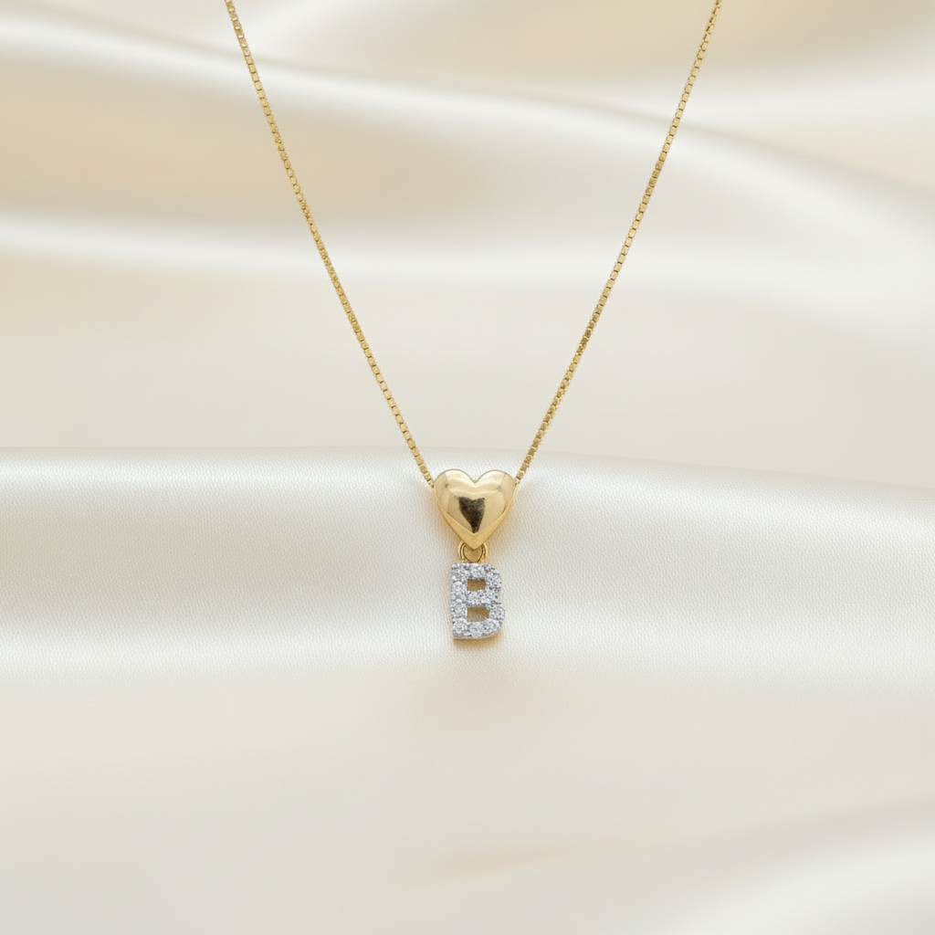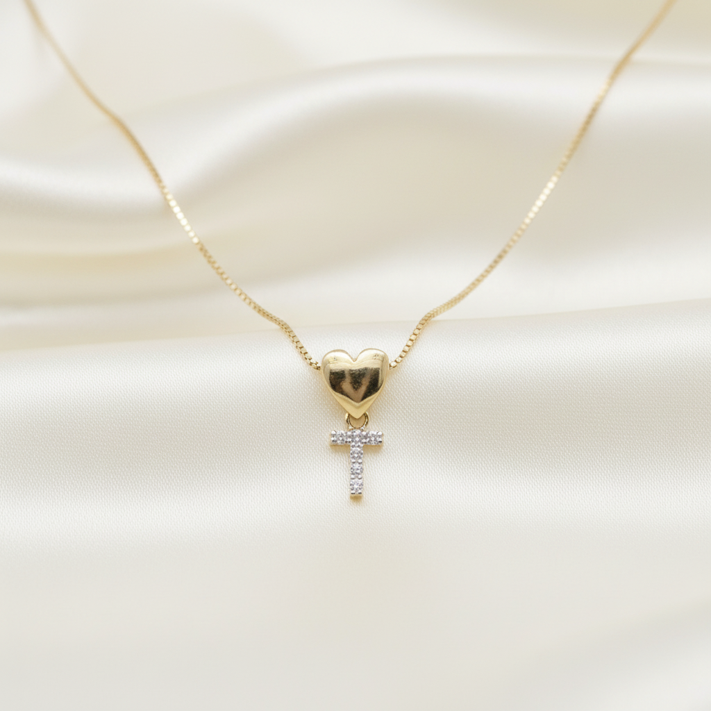 Chain Necklace with heart-shaped pendant and an initial in 18K Gold