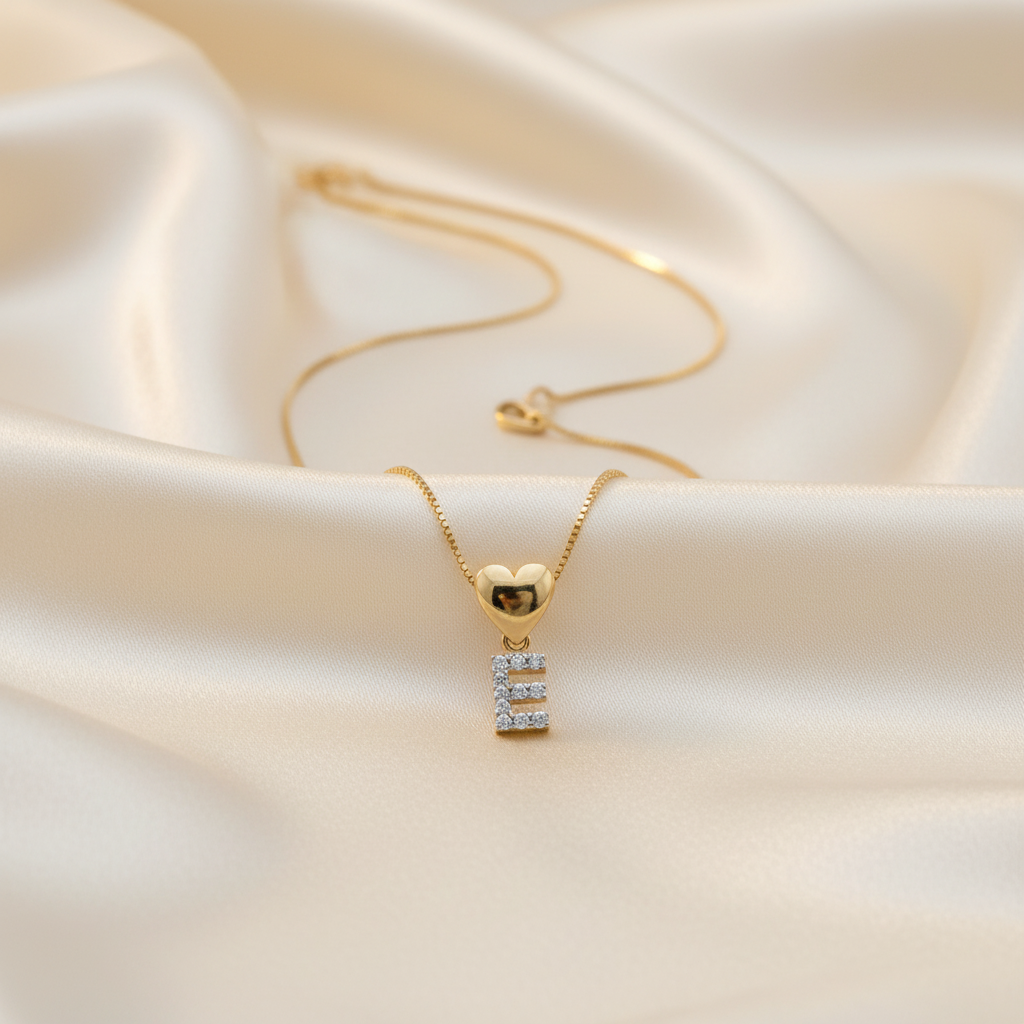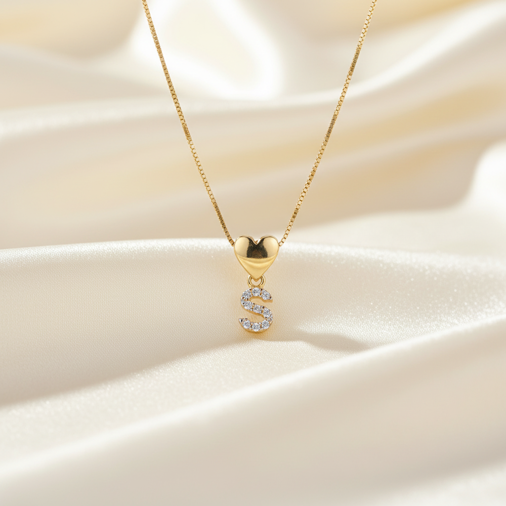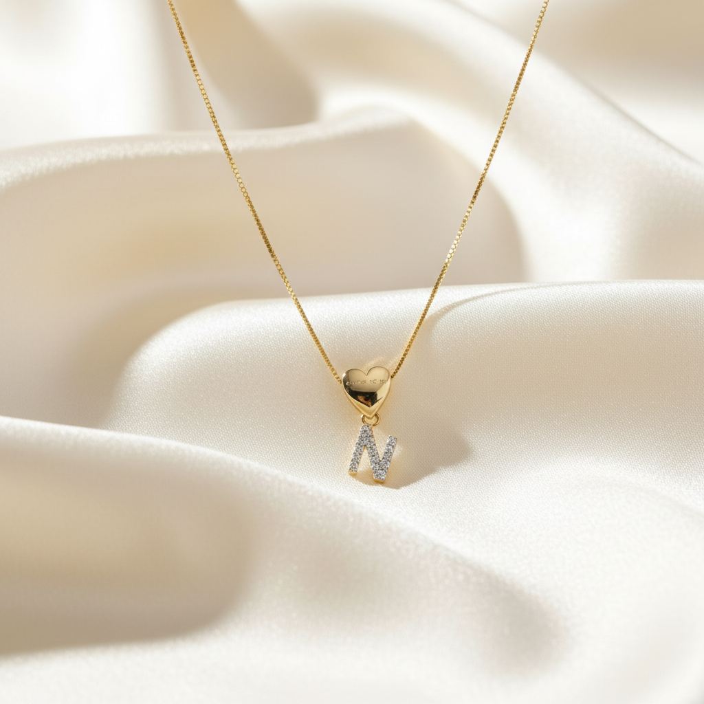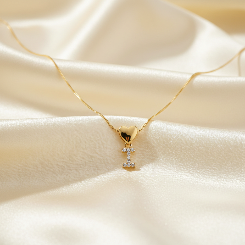 Chain Necklace with heart-shaped pendant and an initial in 18K Gold