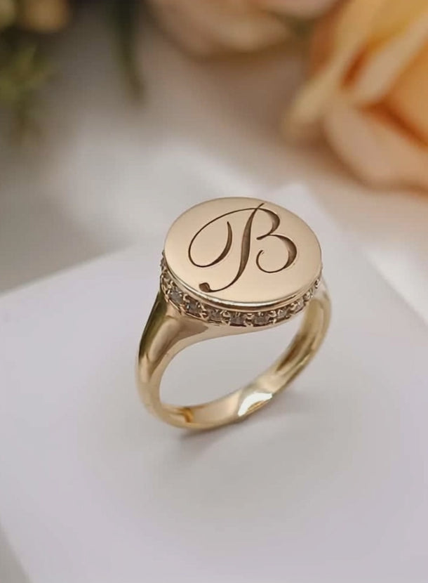 The classic letter silhouette, paired with the enduring beauty of diamonds, transforms this ring into a timeless symbol of identity and sophistication.