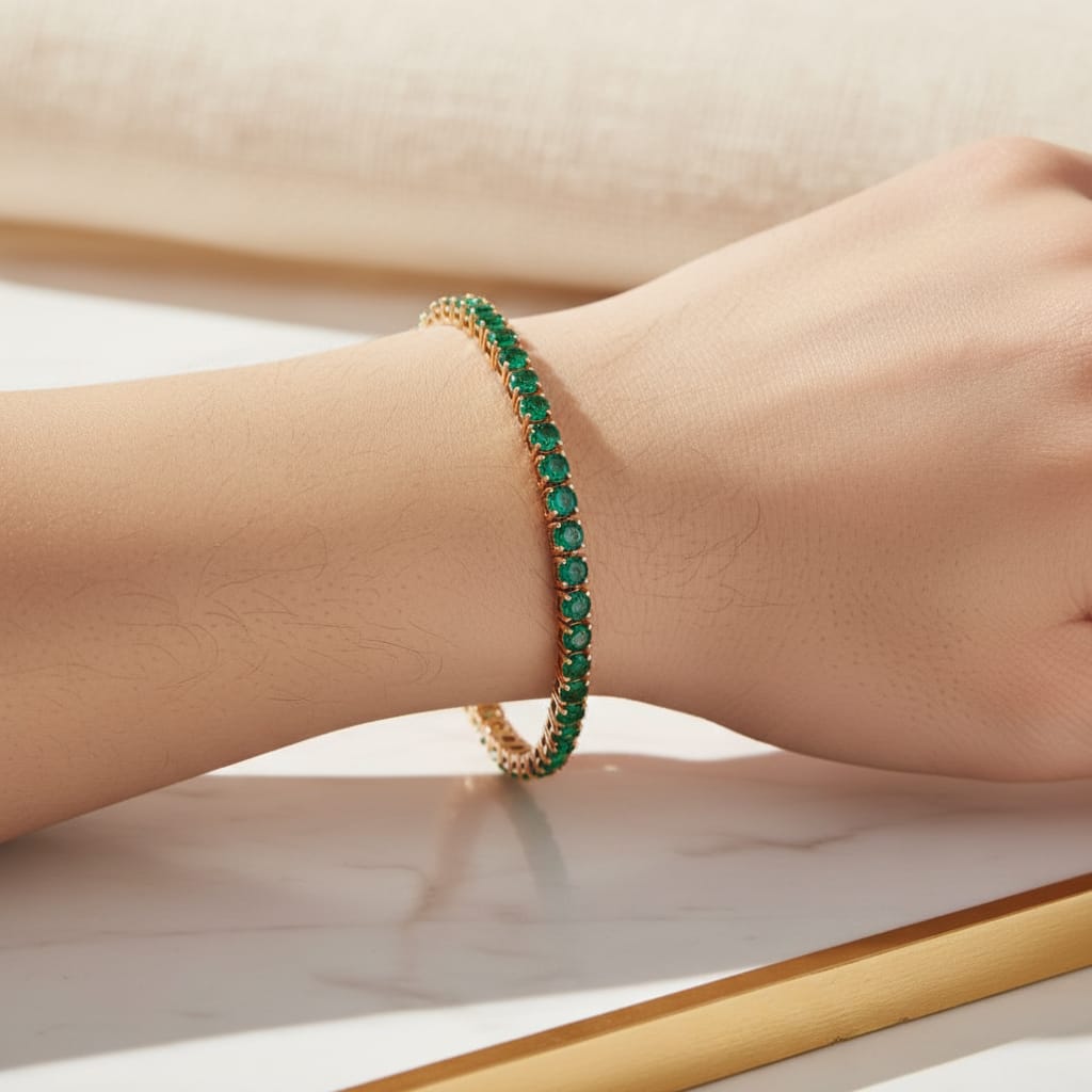 Símbolo de sofisticação e beleza atemporal, esta pulseira é ideal para quem aprecia joias finas e o fascínio natural das pedras preciosas.