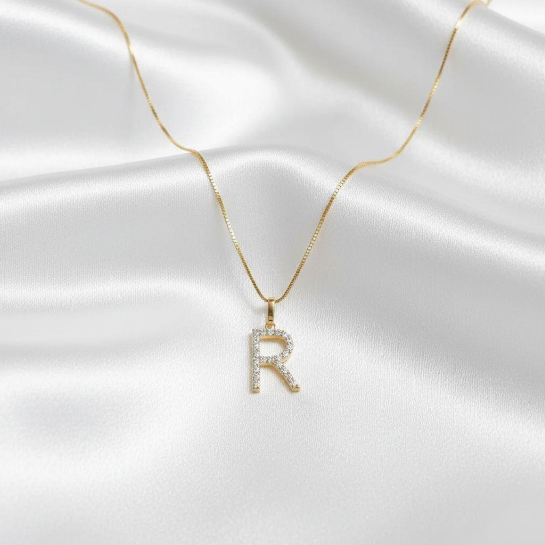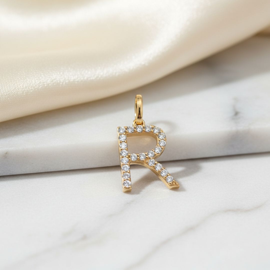 Pingente com a letra 'R' e 22 diamantes sustentáveis.