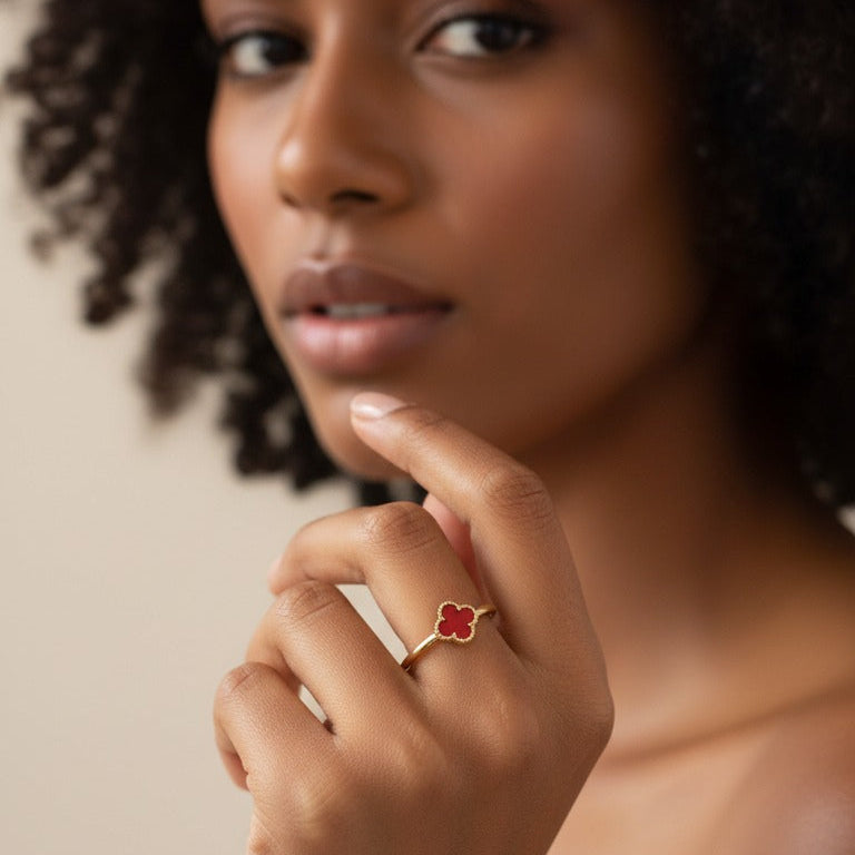 Ícone contemporâneo de elegância, este anel de trevo em ouro 18k combina design atemporal com acabamento refinado. Sua silhueta delicada e acabamento polido oferecem um equilíbrio sofisticado entre conforto para o dia a dia e um toque de luxo.