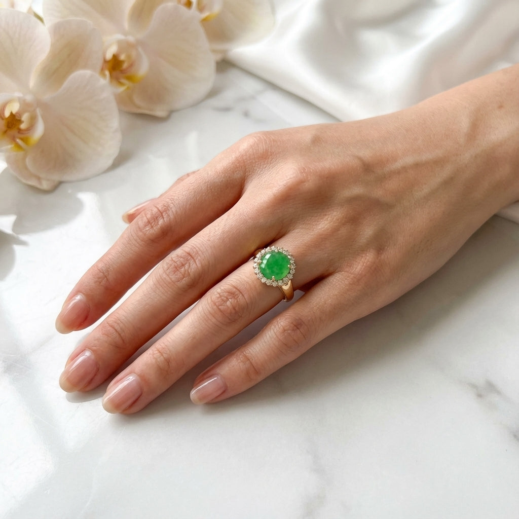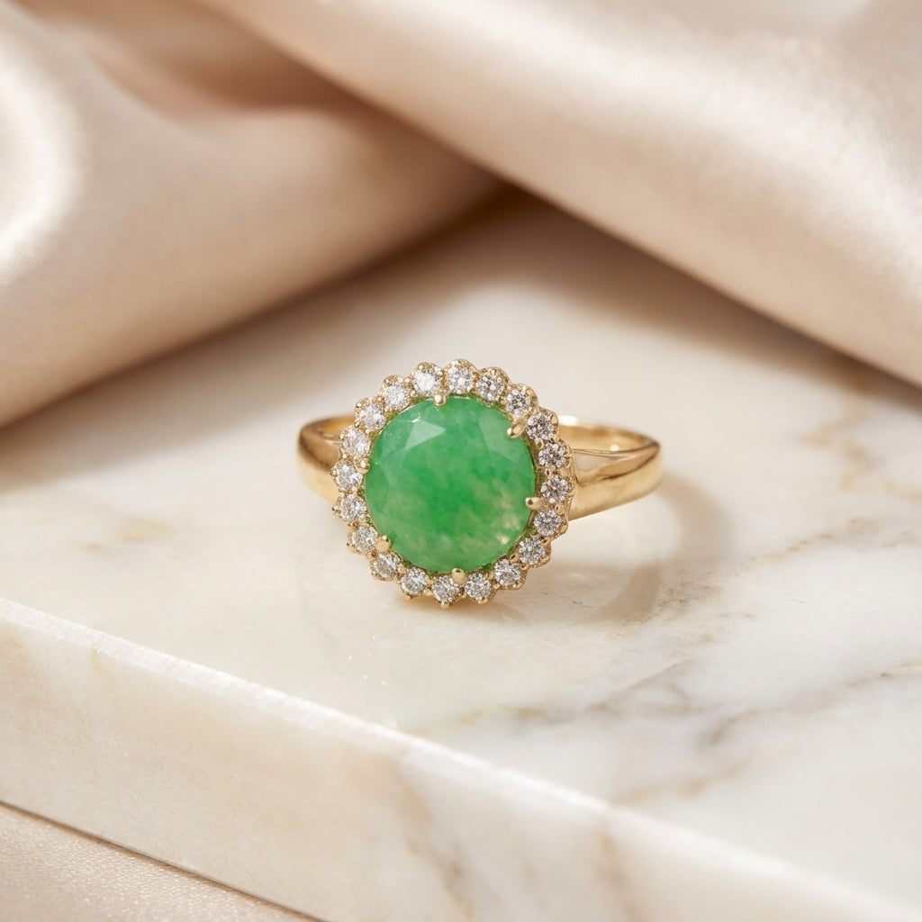 - Modelo : Anel com pedra de jade verde redonda