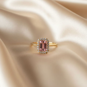 Pink Tourmaline Halo Ring with Diamonds in 18K Gold