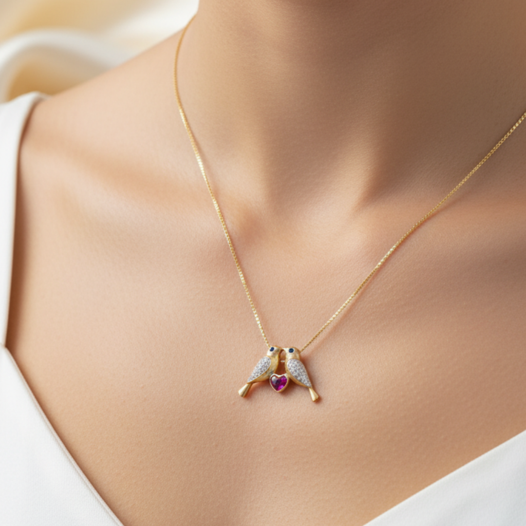 Celebre o amor e a beleza com o nosso exclusivo pingente Dois Pássaros em Ouro 18k, uma verdadeira obra de arte que captura momentos de ternura.