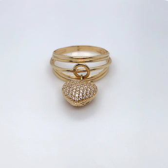 Confeccionado em Ouro 18k, seus cinco arcos interligados protegem um visual ousado e elegante, enquanto o pingente em formato de coração, cravejado com zircônias detalhadas, confere um toque romântico e sofisticado à peça.