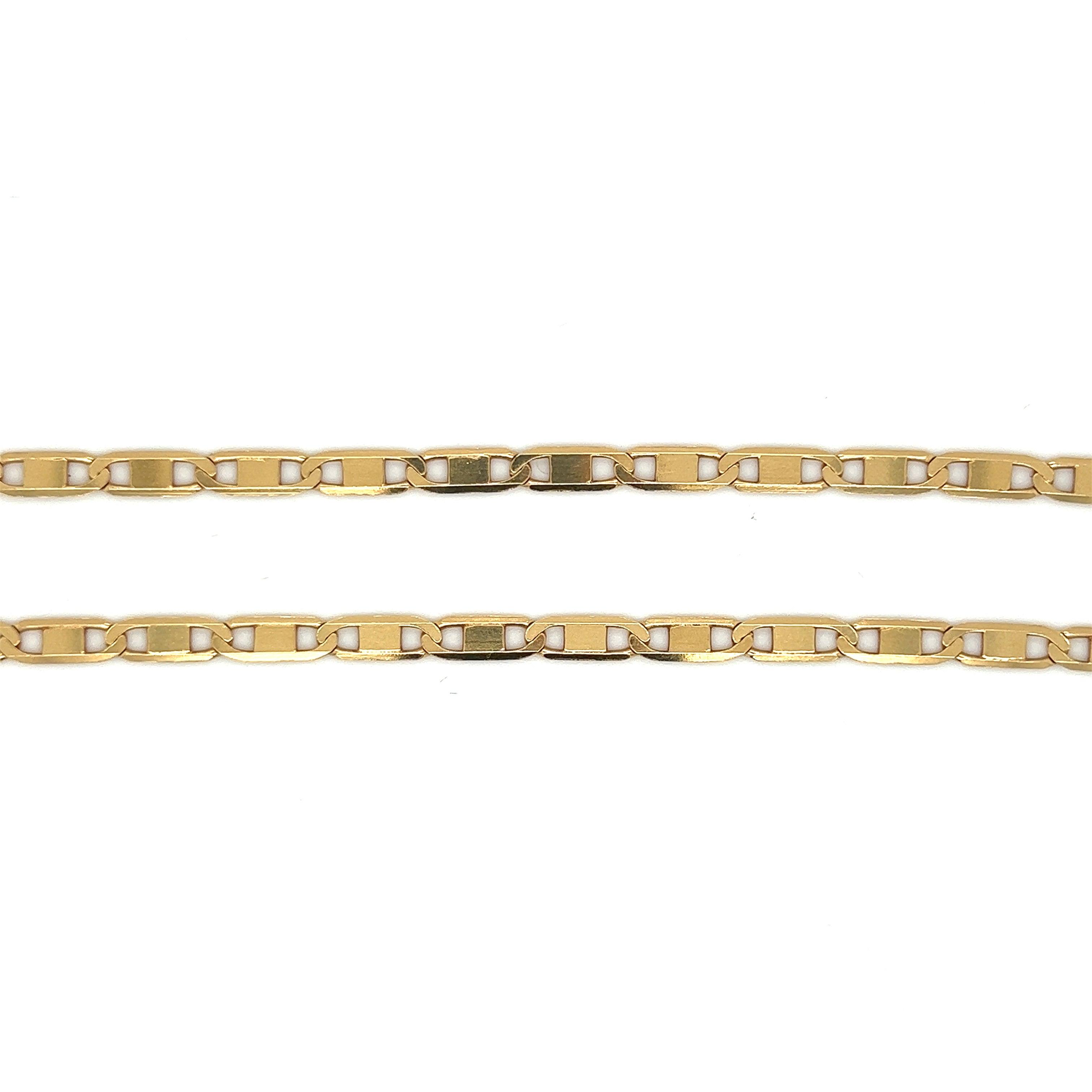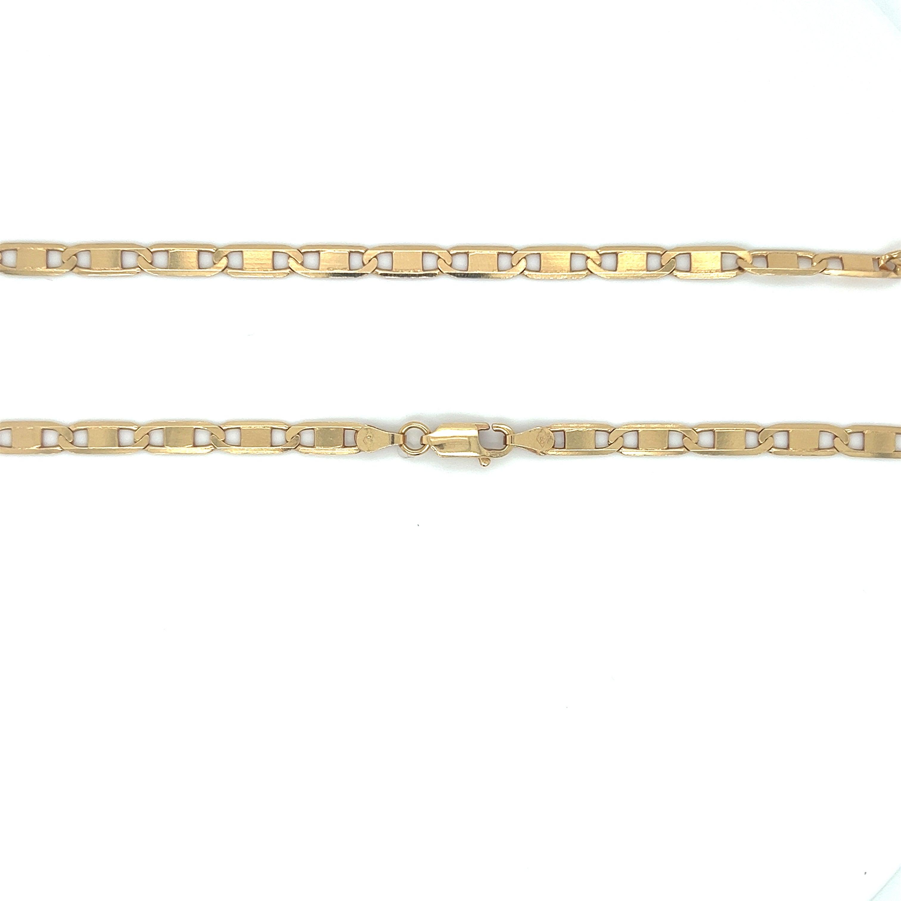 Pesando aproximadamente 14,7g, cada elo é meticulosamente forjado em ouro, garantindo durabilidade excepcional e brilho cativante.