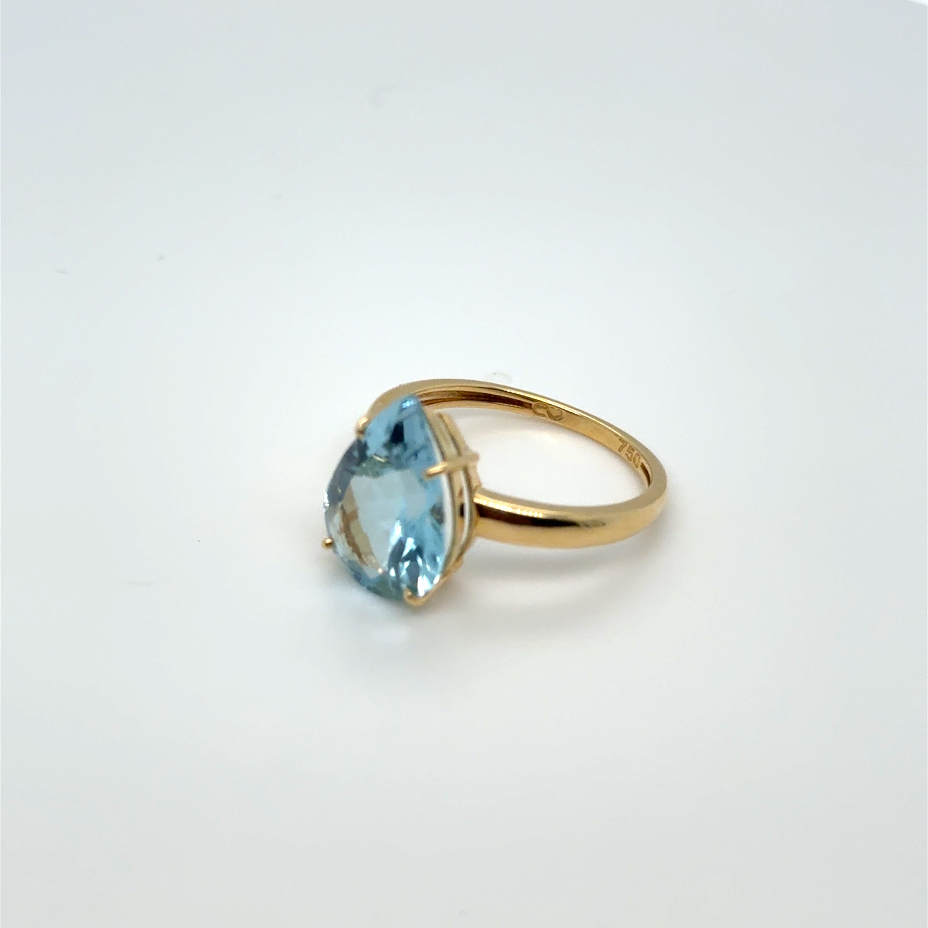 Anel com Topázio Azul Natural Lapidação Gota