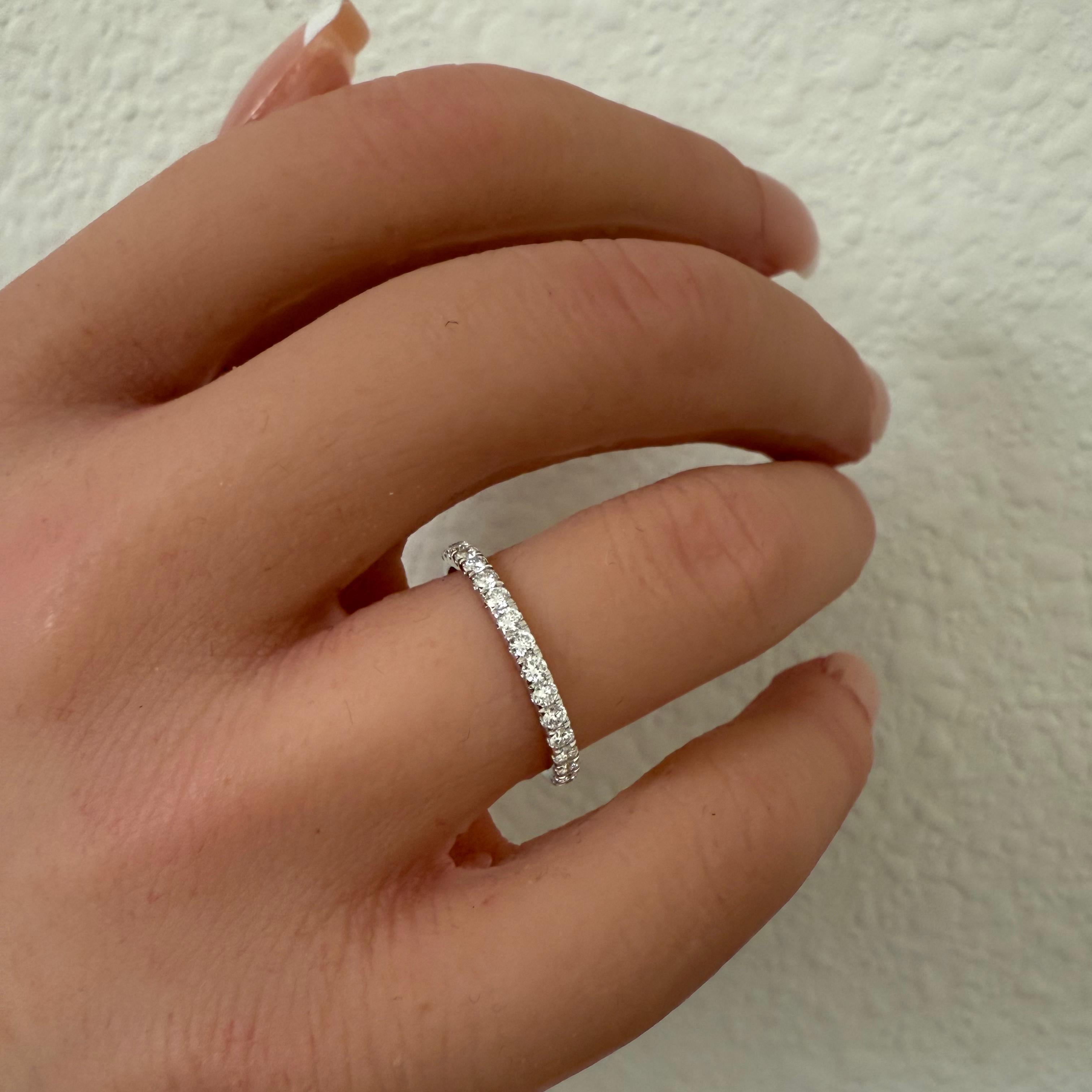 Essa Meia Aliança em Ouro 18k com 17 Diamantes Sustentáveis é o equilíbrio perfeito entre brilho, elegância e propósito.